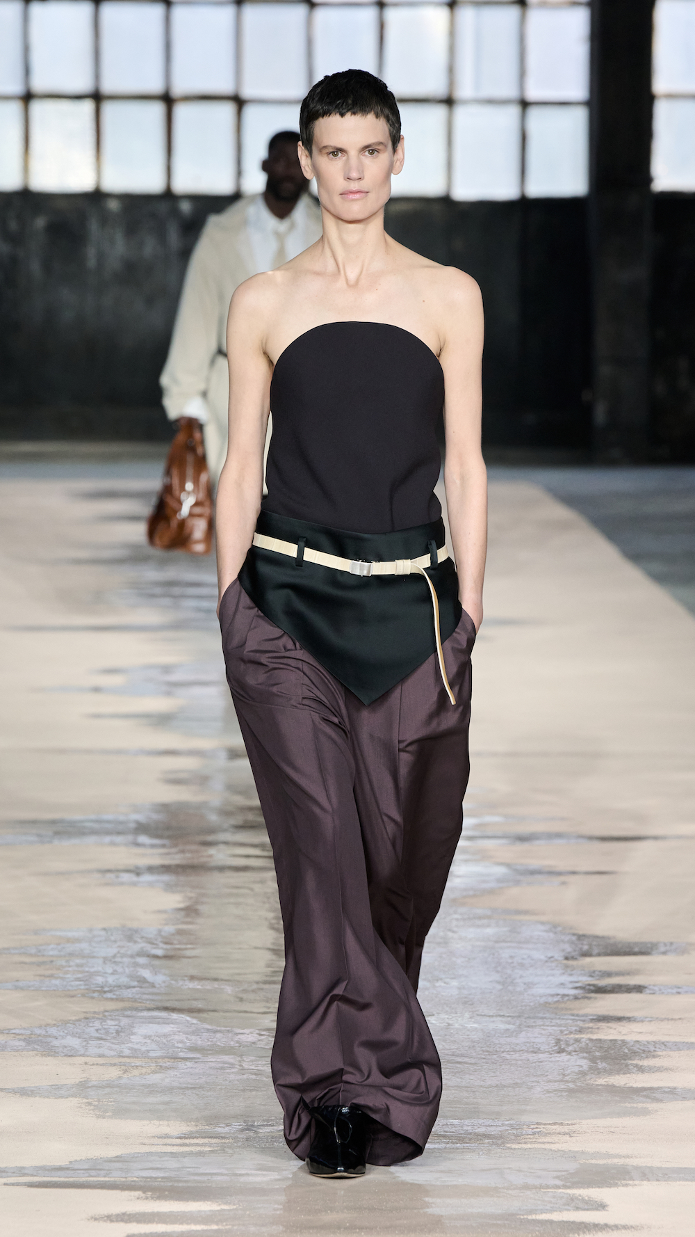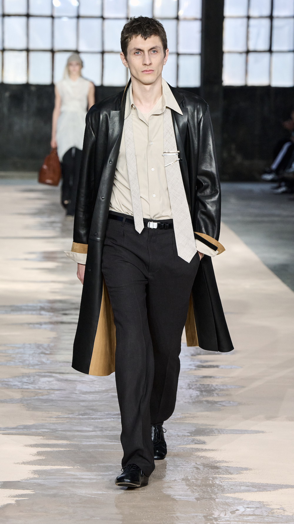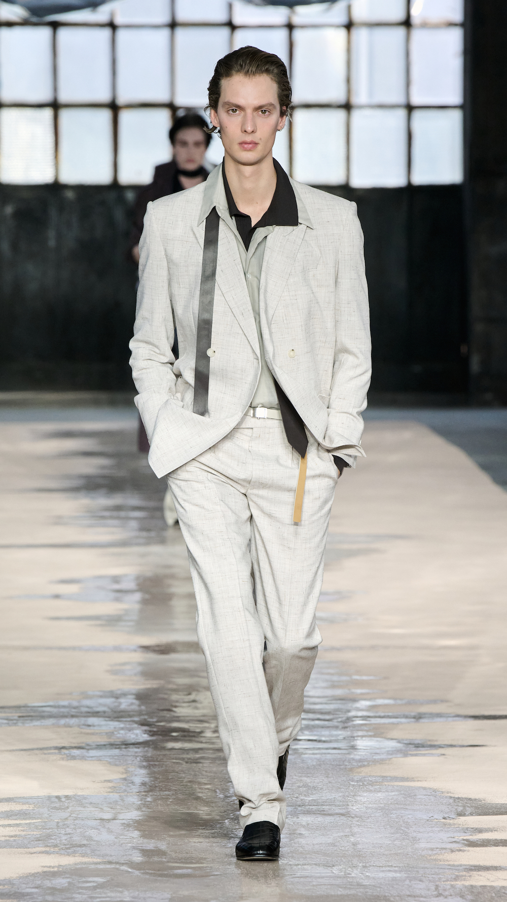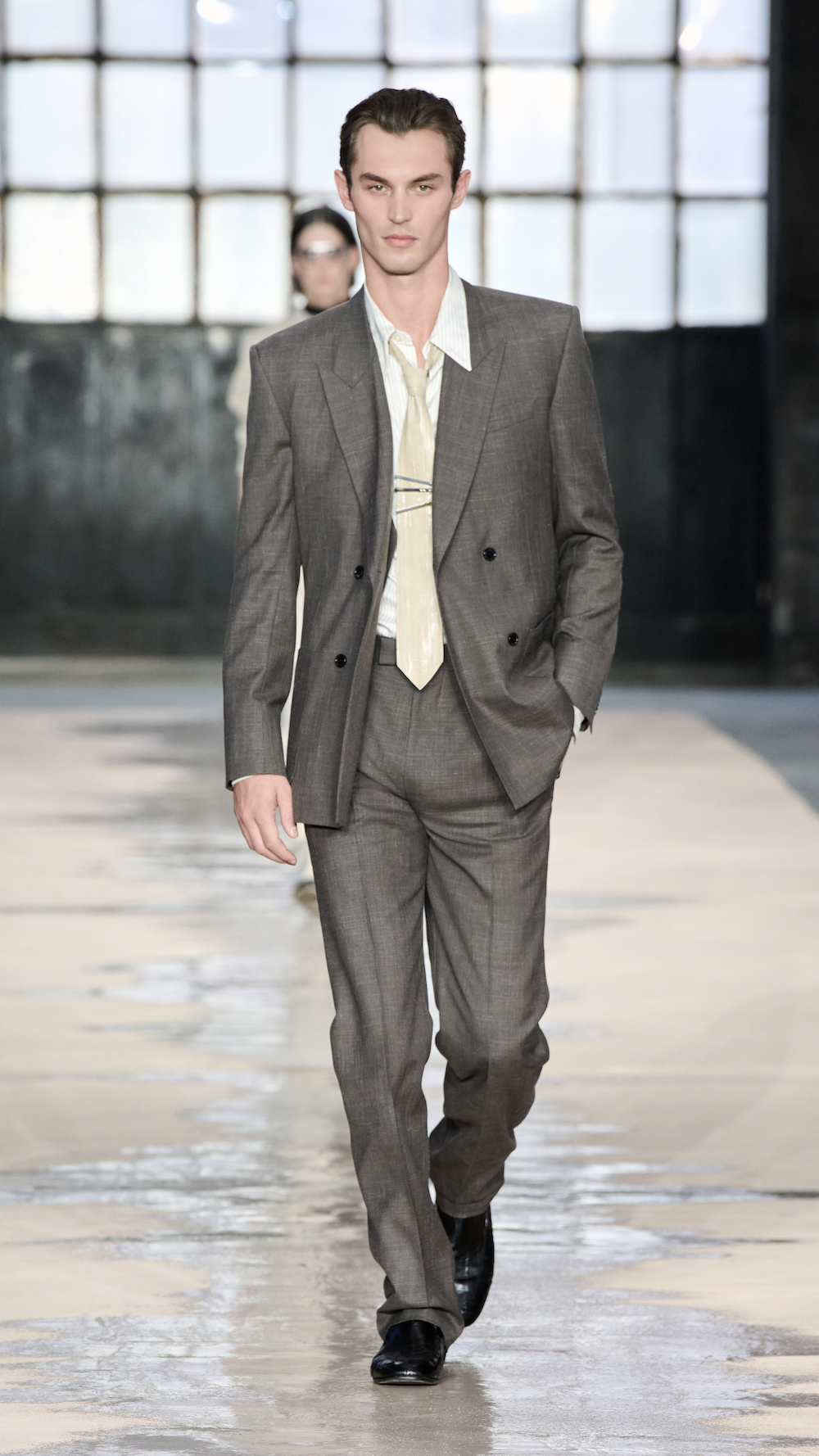 Favourite pieces in amongst the double shirts, ties worn undone, three quarter length jackets and trench coats, were two sensational flesh coloured silicon pieces. There was the sense that all the models and everyone walking in the show had rolled out of a Berlin night club. They were threading their way home, guided by creative director Marco Falcioni in the most assured way. The German lens is fascinating and lends Boss its own cultural depth. We say ja.