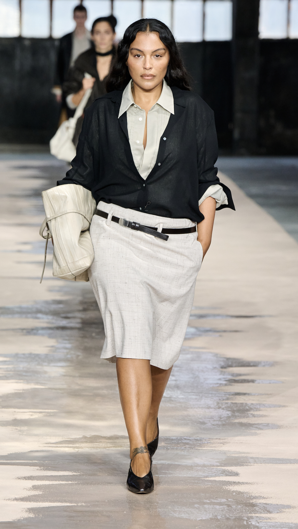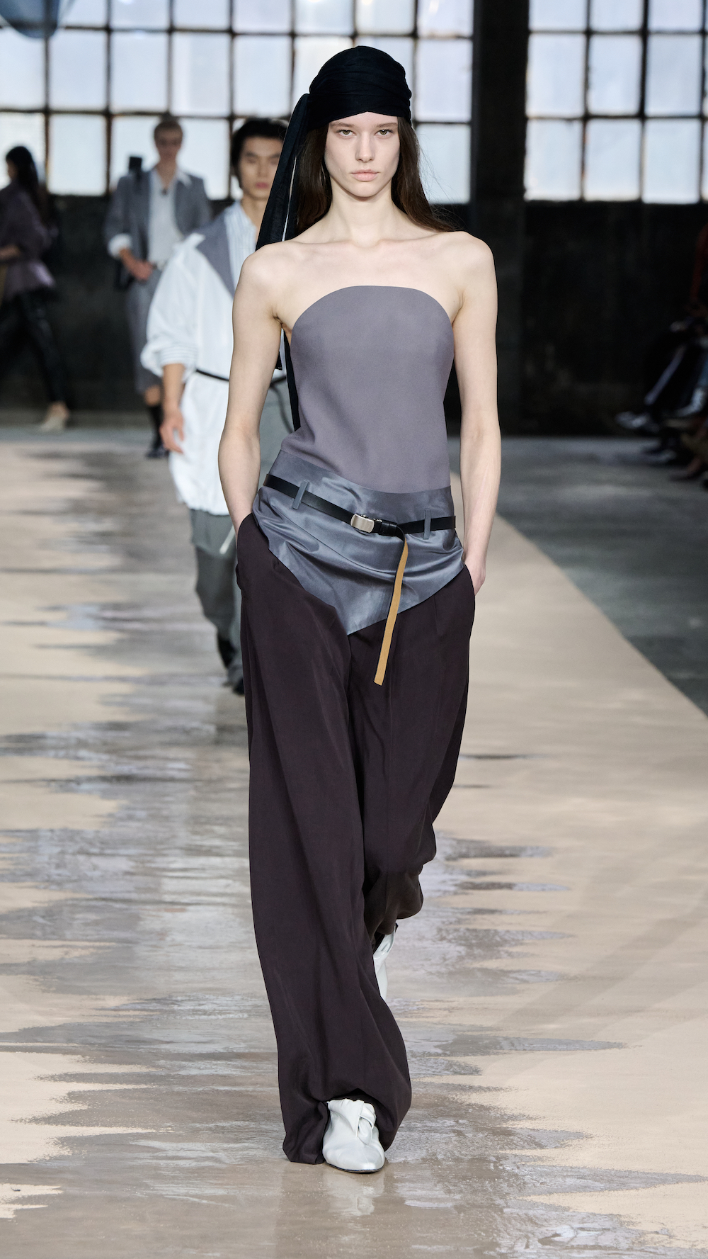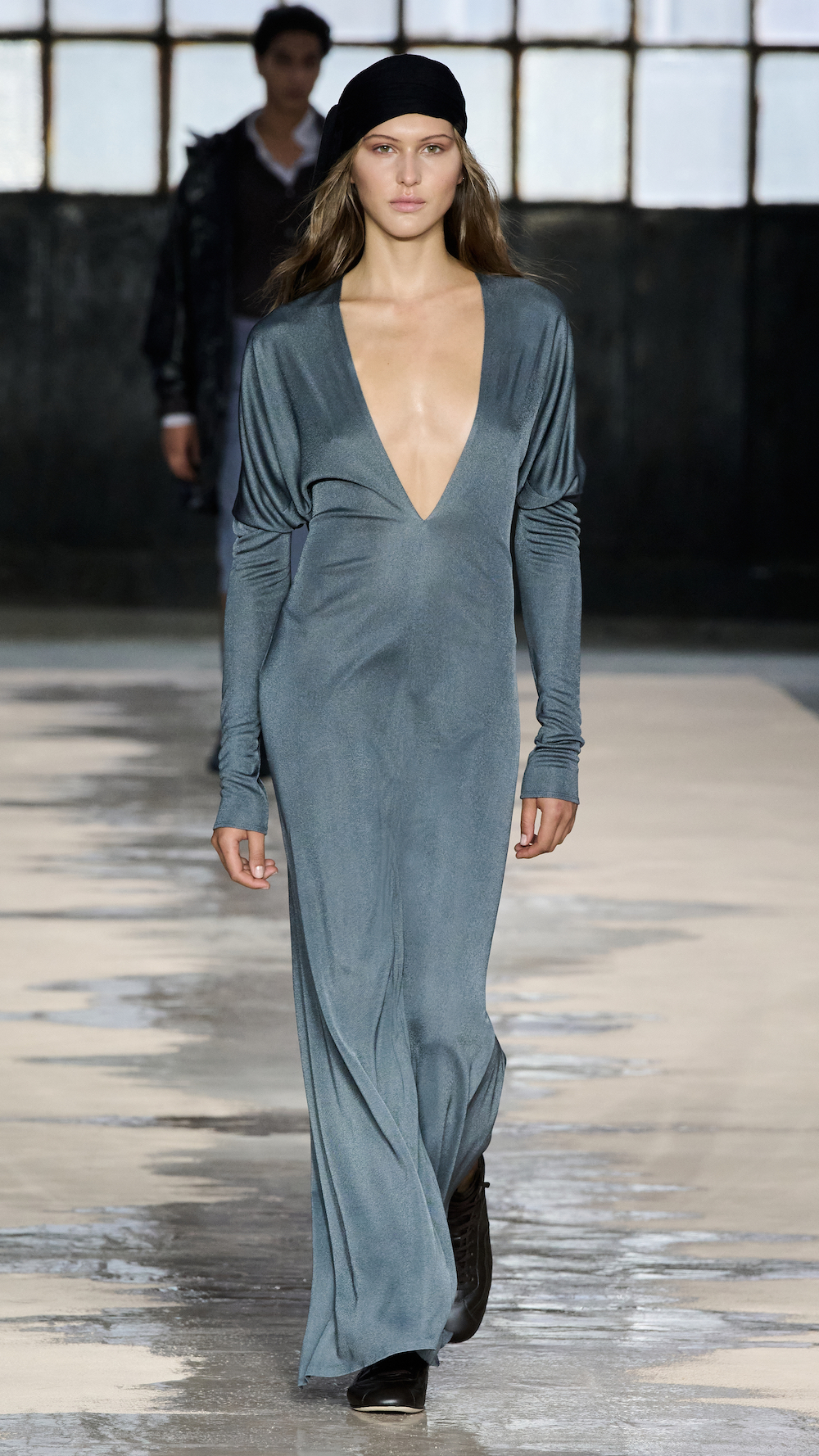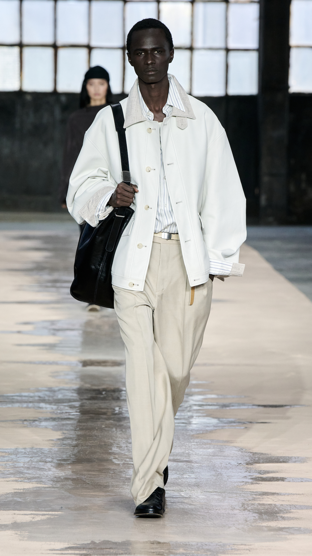 Favourite pieces in amongst the double shirts, ties worn undone, three quarter length jackets and trench coats, were two sensational flesh coloured silicon pieces. There was the sense that all the models and everyone walking in the show had rolled out of a Berlin night club. They were threading their way home, guided by creative director Marco Falcioni in the most assured way. The German lens is fascinating and lends Boss its own cultural depth. We say ja.
