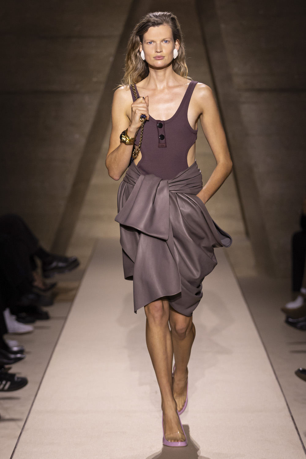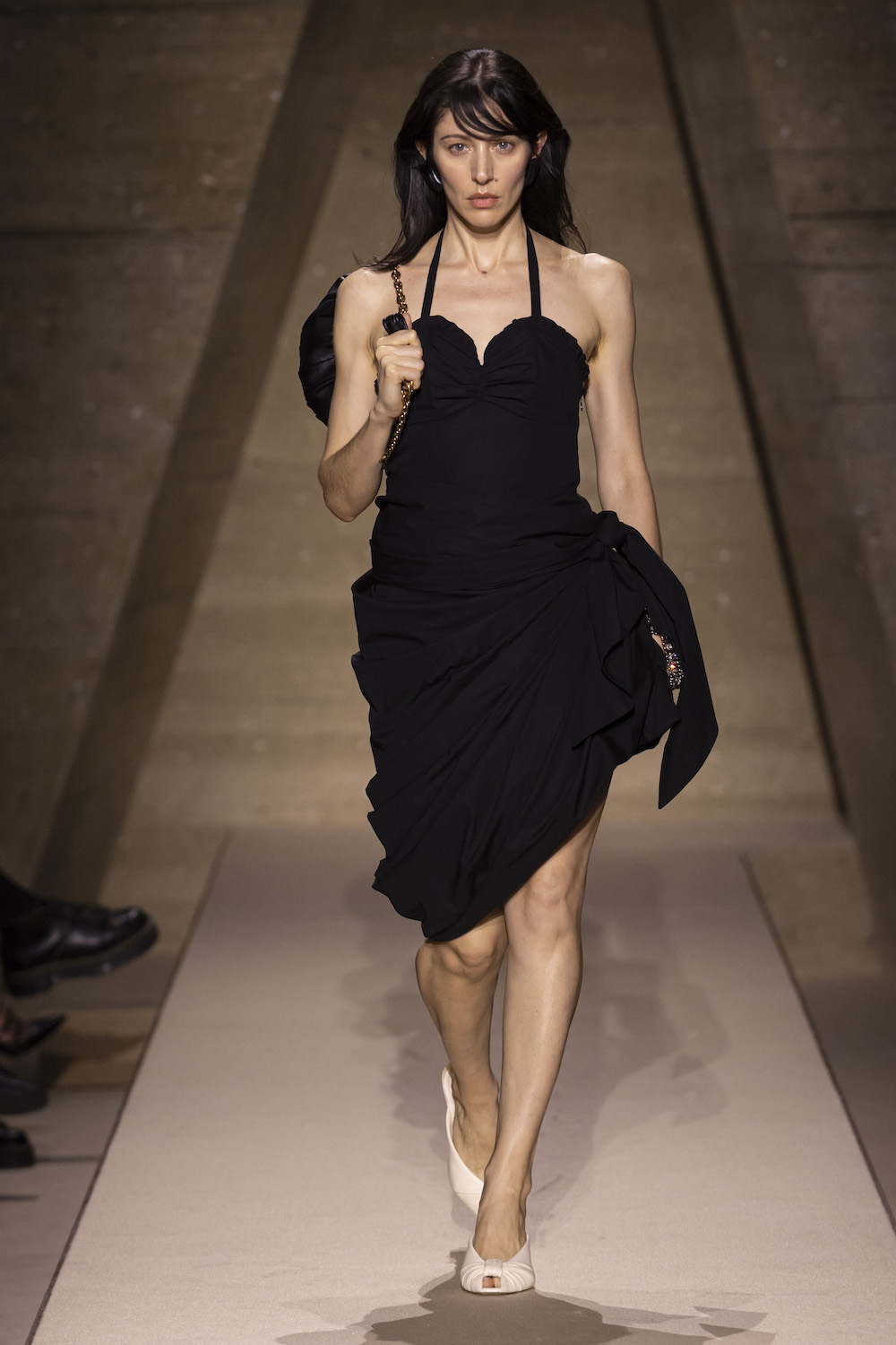 The Chloé girl is evolving. There’s more to her than boho. For SS26, Chemena Kamali showed she can wear archive florals, draped and swagged into curve caressing, 1950s-inspired dresses. The designer keyed into the innate femininity of the house, going right back to its earliest 1950s silhouettes for inspiration.