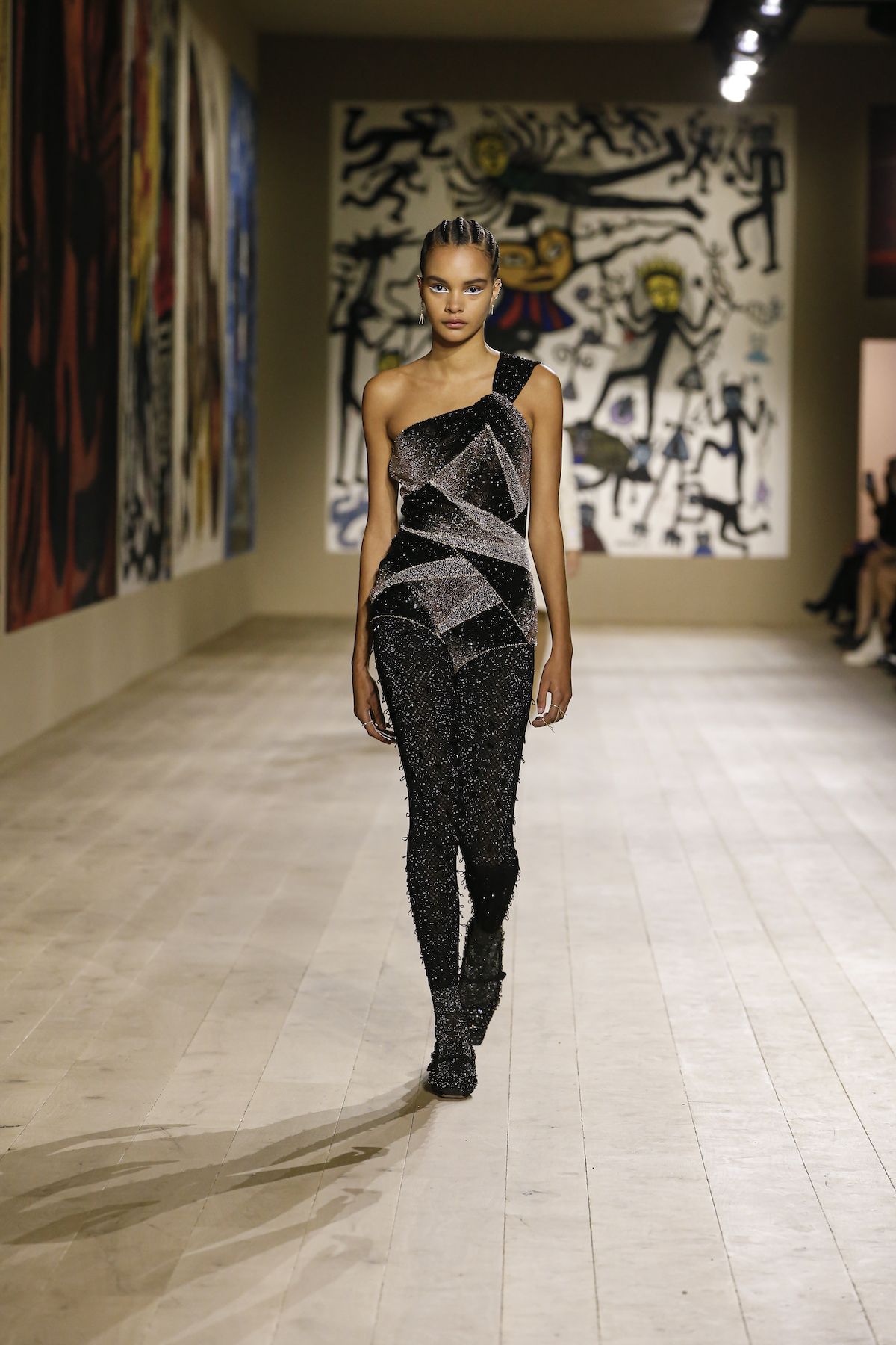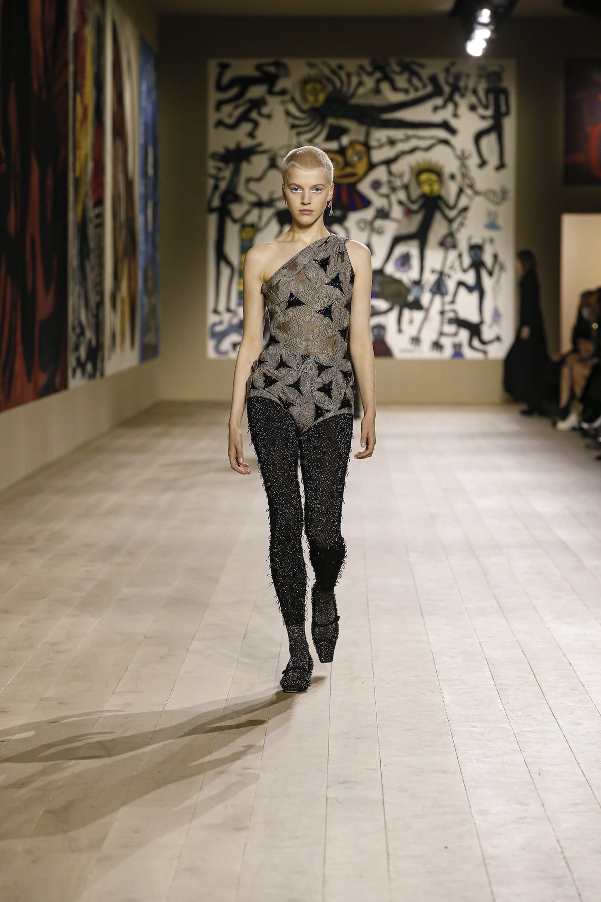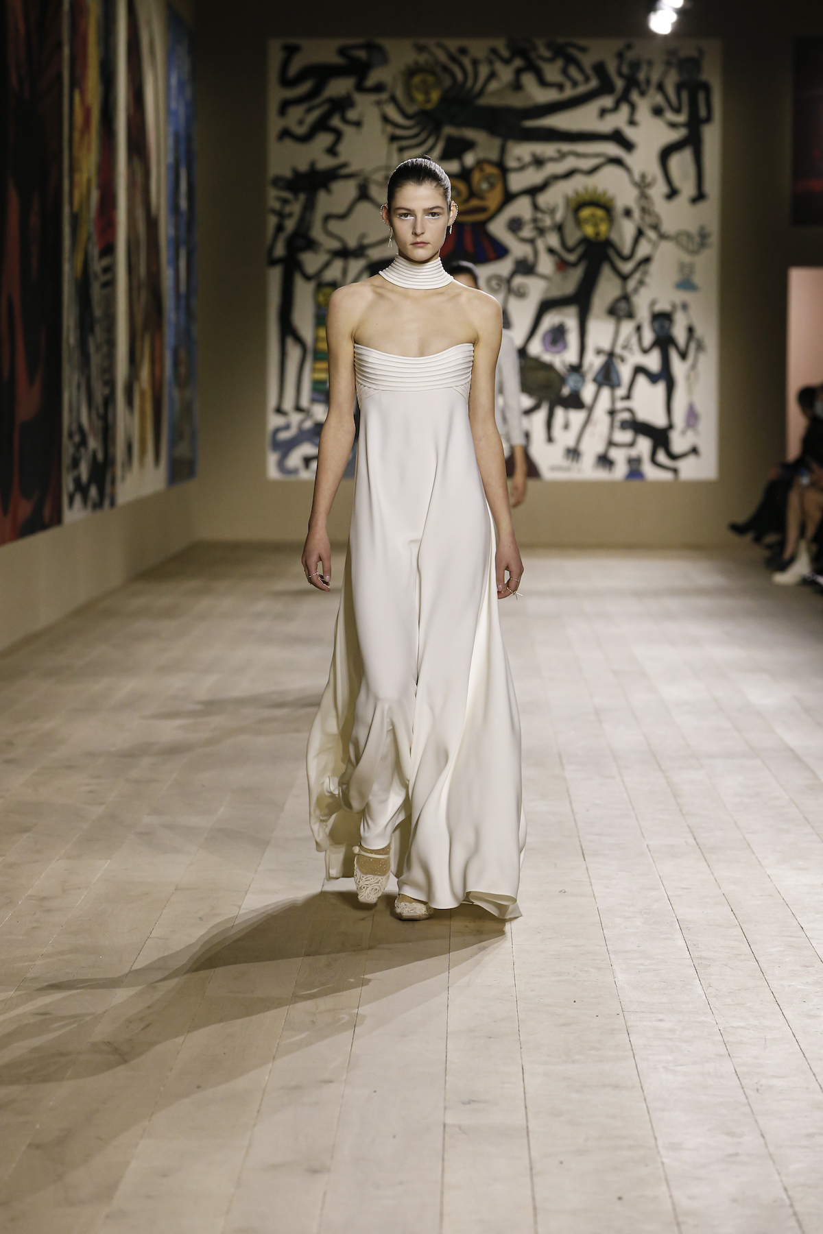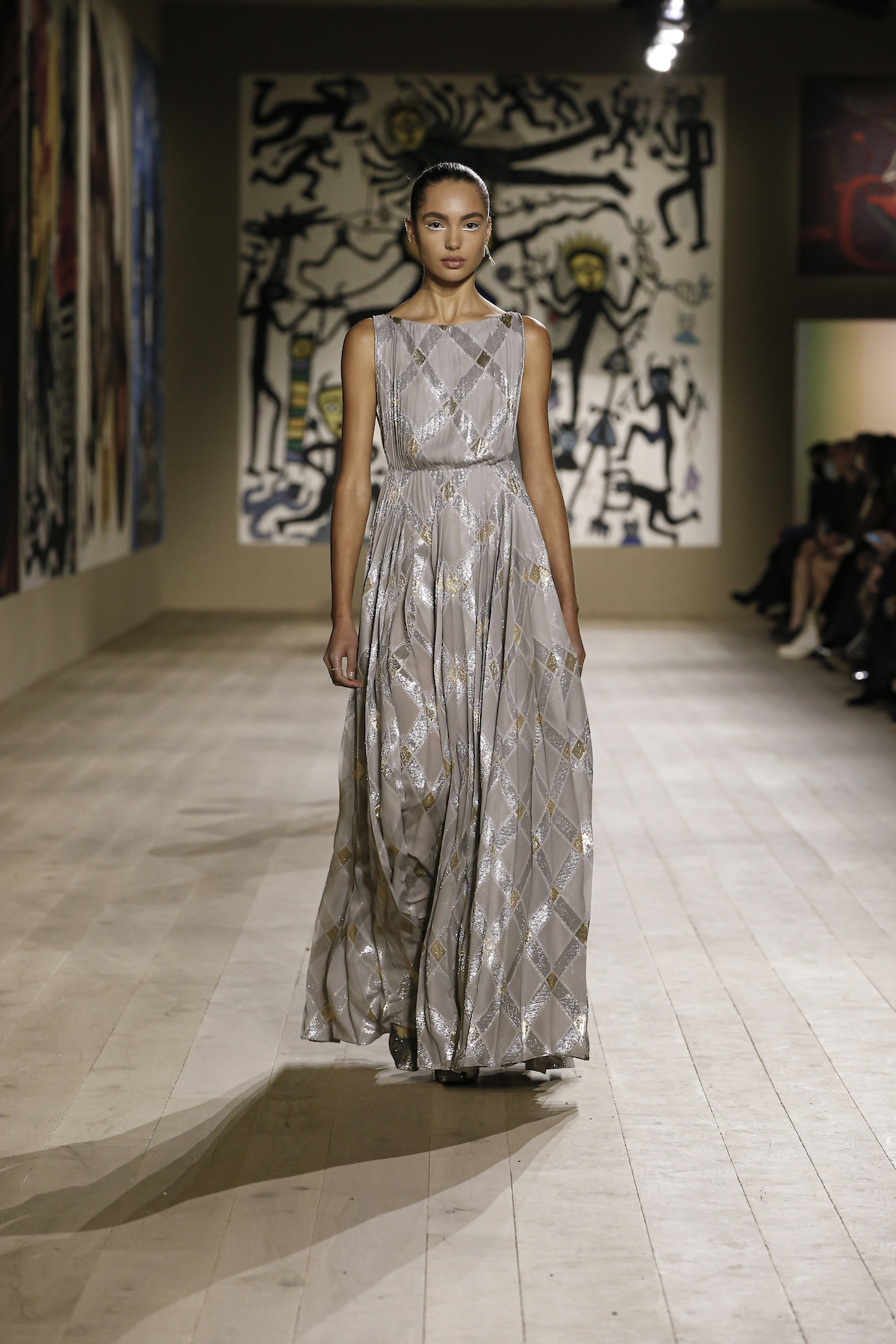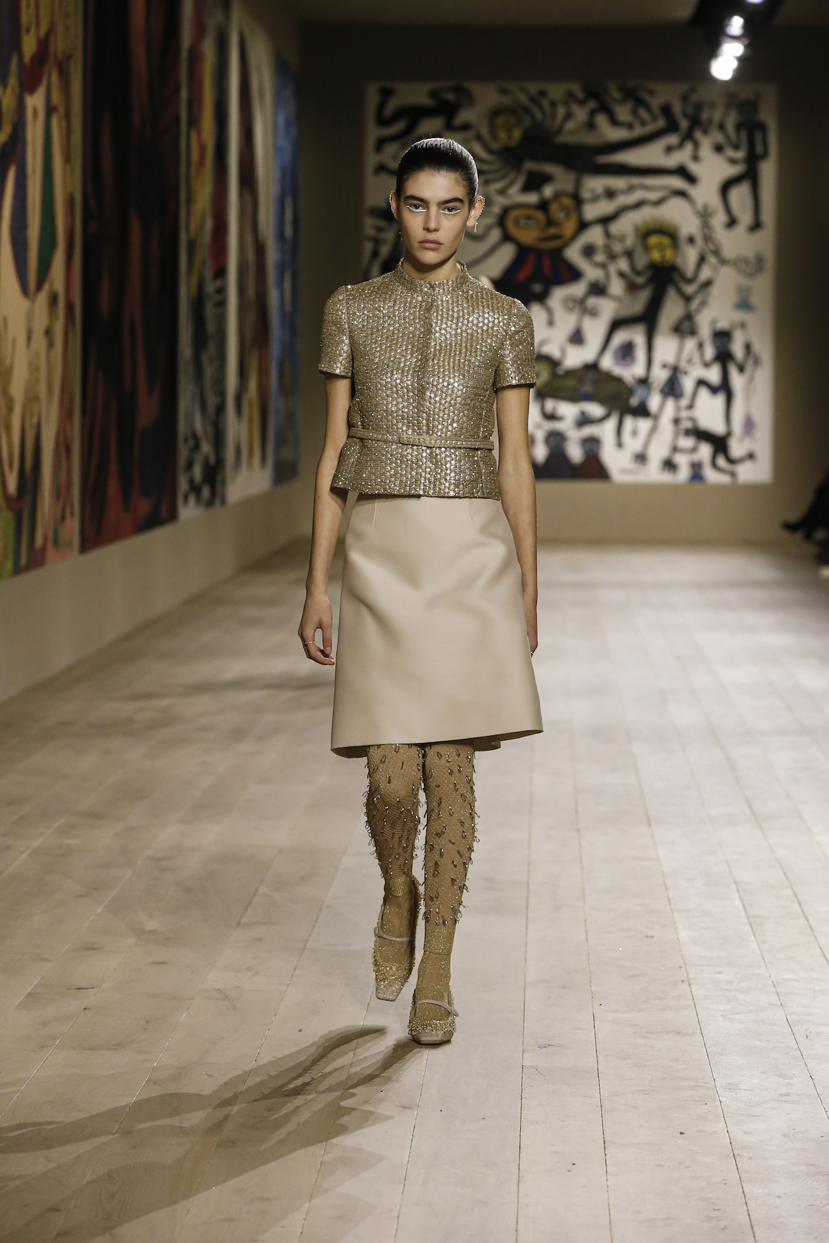 Dior's Couture SS22 show was shown at the Musee Rodin in Paris under artworks created by Indian couple Madhvi and Manu Parekh. The Dior girls glided in slick couture-ified bodysuits, glistening covered in crystals while organza and tweed came adorned with the finest Indian embroidery. The pure white wool suits and dresses were dreamlike, silk crepe dress's flouncded with a metallic fishnet neckline falling so effortlessly as the girls walked. Upon leaving the space, we spotted a woman dressed in a classic Dior two-piece suit, coiffed to perfection, while her companion embodied the house’s new legion of fans, with her Saddle bag and sneakers. They both gleamed with excitement. Chiuri has curated a cross-generational shopping list with immediate effect.