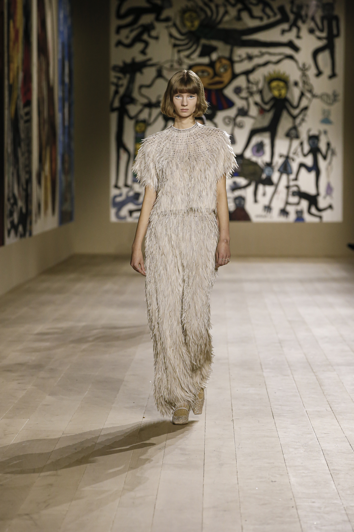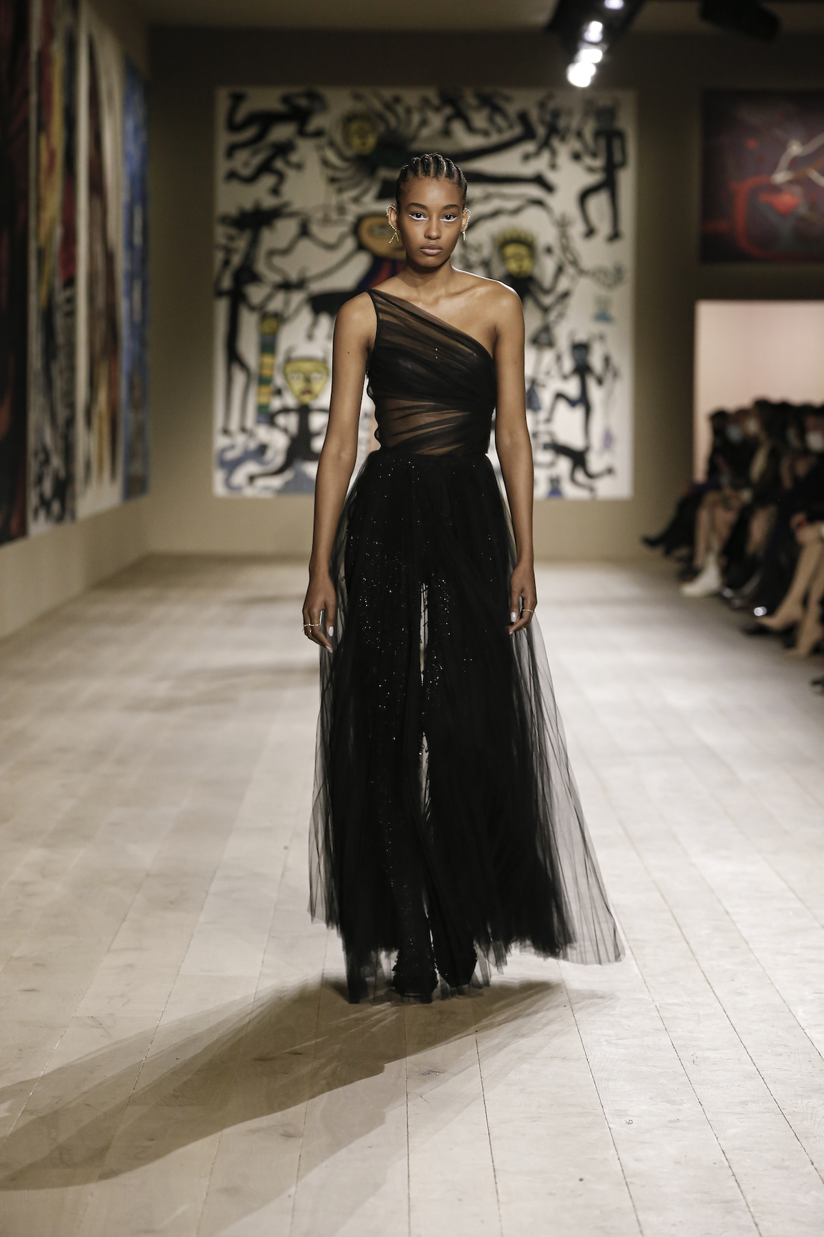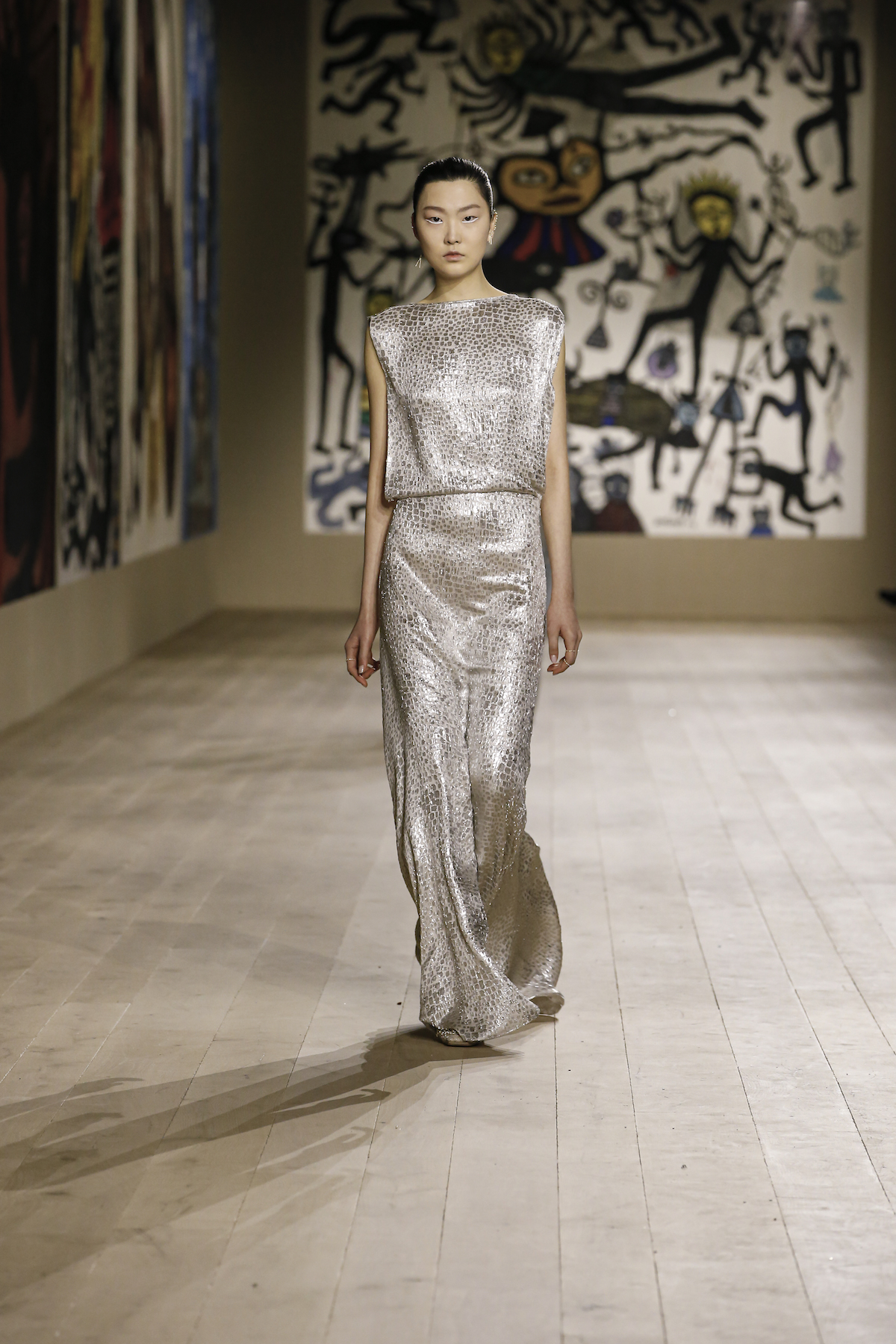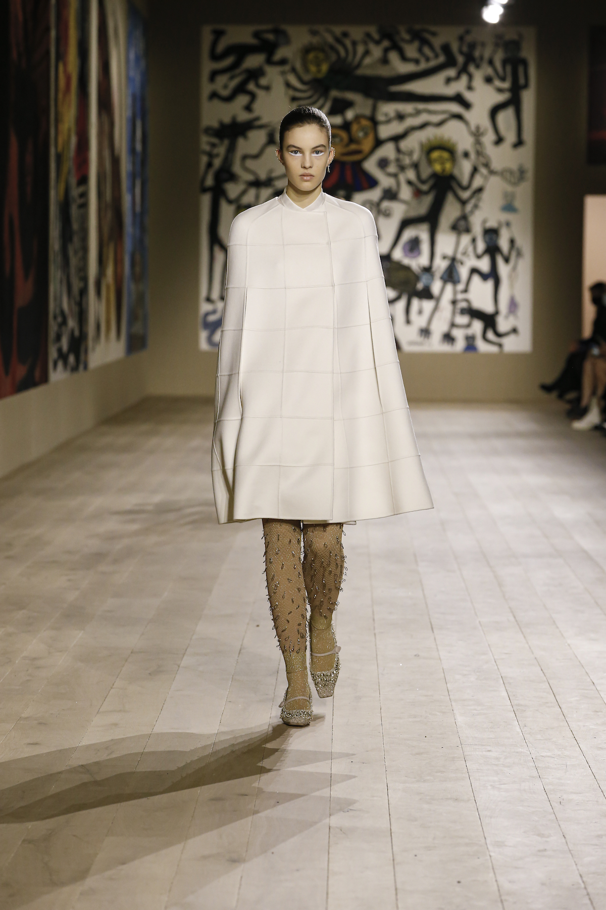 Dior's Couture SS22 show was shown at the Musee Rodin in Paris under artworks created by Indian couple Madhvi and Manu Parekh. The Dior girls glided in slick couture-ified bodysuits, glistening covered in crystals while organza and tweed came adorned with the finest Indian embroidery. The pure white wool suits and dresses were dreamlike, silk crepe dress's flouncded with a metallic fishnet neckline falling so effortlessly as the girls walked. Upon leaving the space, we spotted a woman dressed in a classic Dior two-piece suit, coiffed to perfection, while her companion embodied the house’s new legion of fans, with her Saddle bag and sneakers. They both gleamed with excitement. Chiuri has curated a cross-generational shopping list with immediate effect.