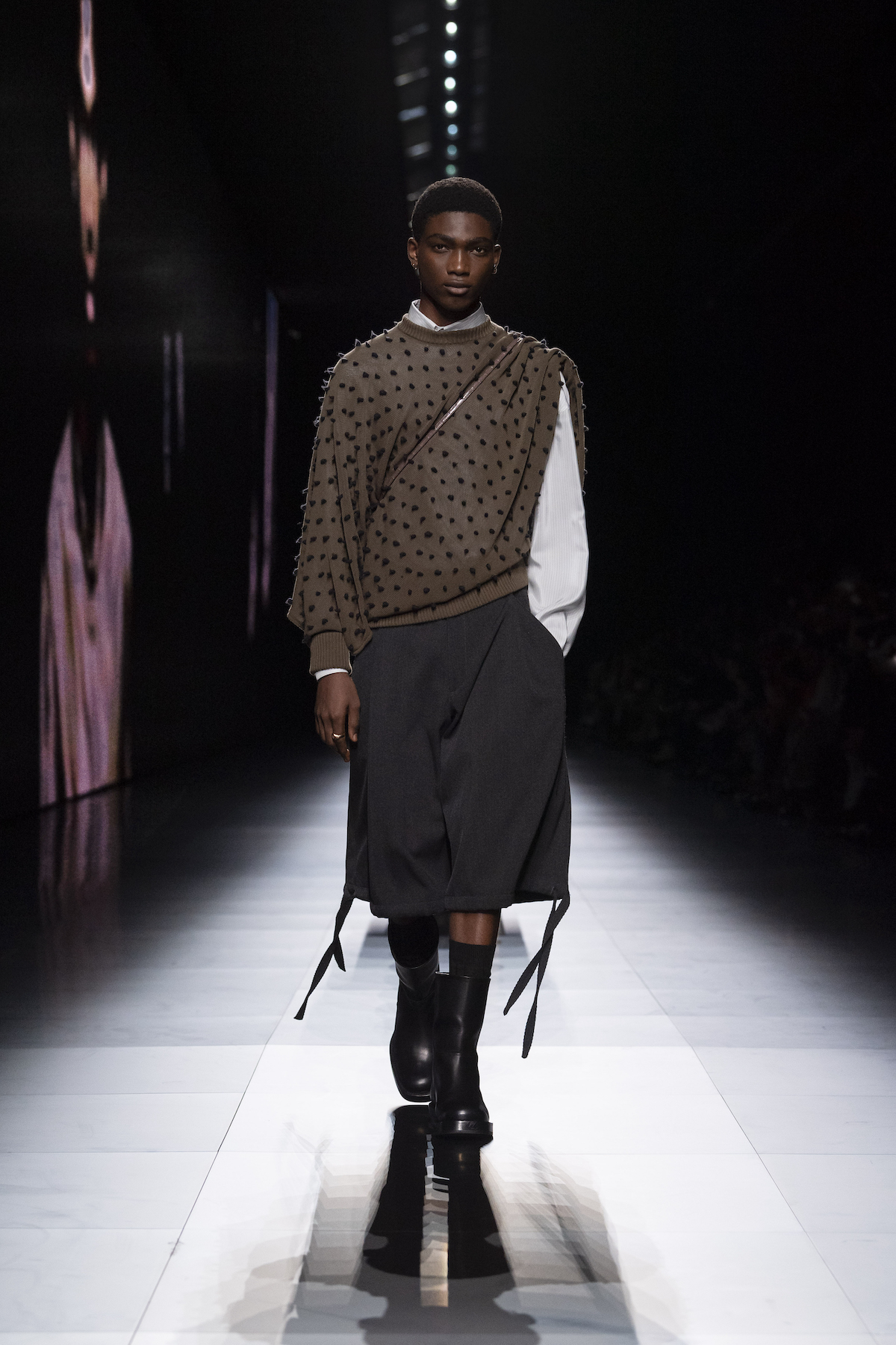 This season in Paris, he looked to T. S. Eliot and his 1992 poem The Waste Land, which was recited by Robert Pattison and Gwendoline Christie, who both appeared on giant screens as models walked the catwalk.