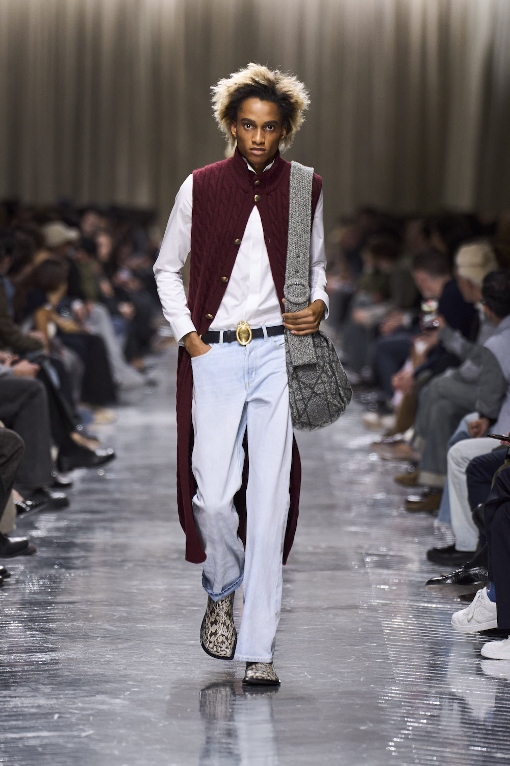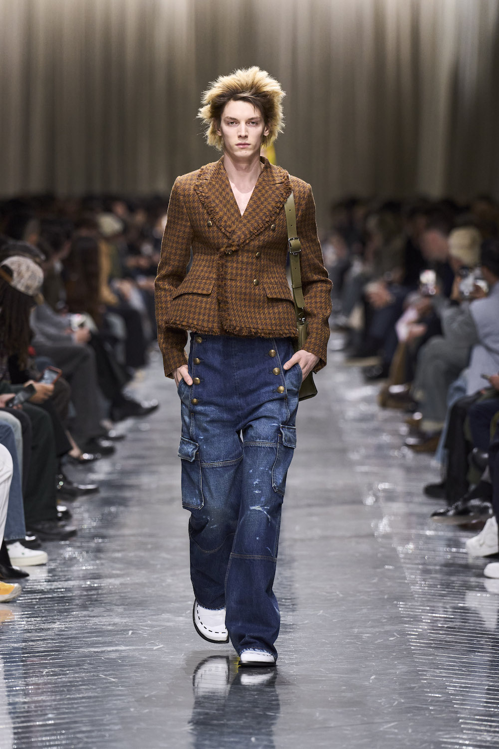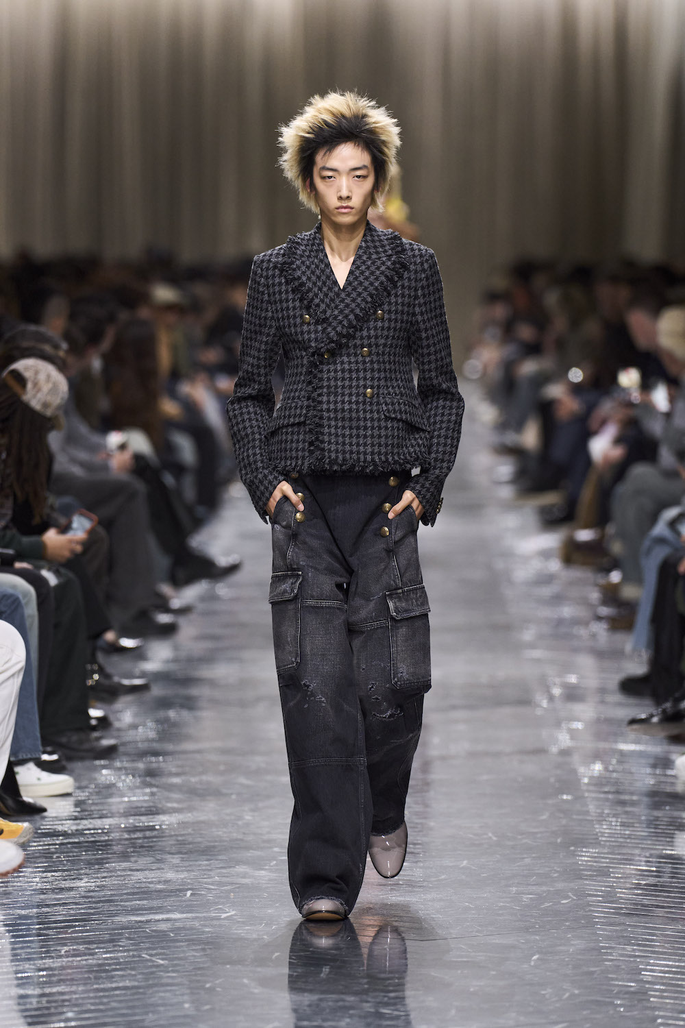 As the designer’s vision for the house begins to unfold, it’s evident Anderson is led by curiosity, to not only reimagine codes at the heart of Dior – here the Bar jacket appeared in battered denim and frayed tweed – but to challenge what makes menswear truly modern. The distinction between past and present is blurred. The result? Truly excellent.