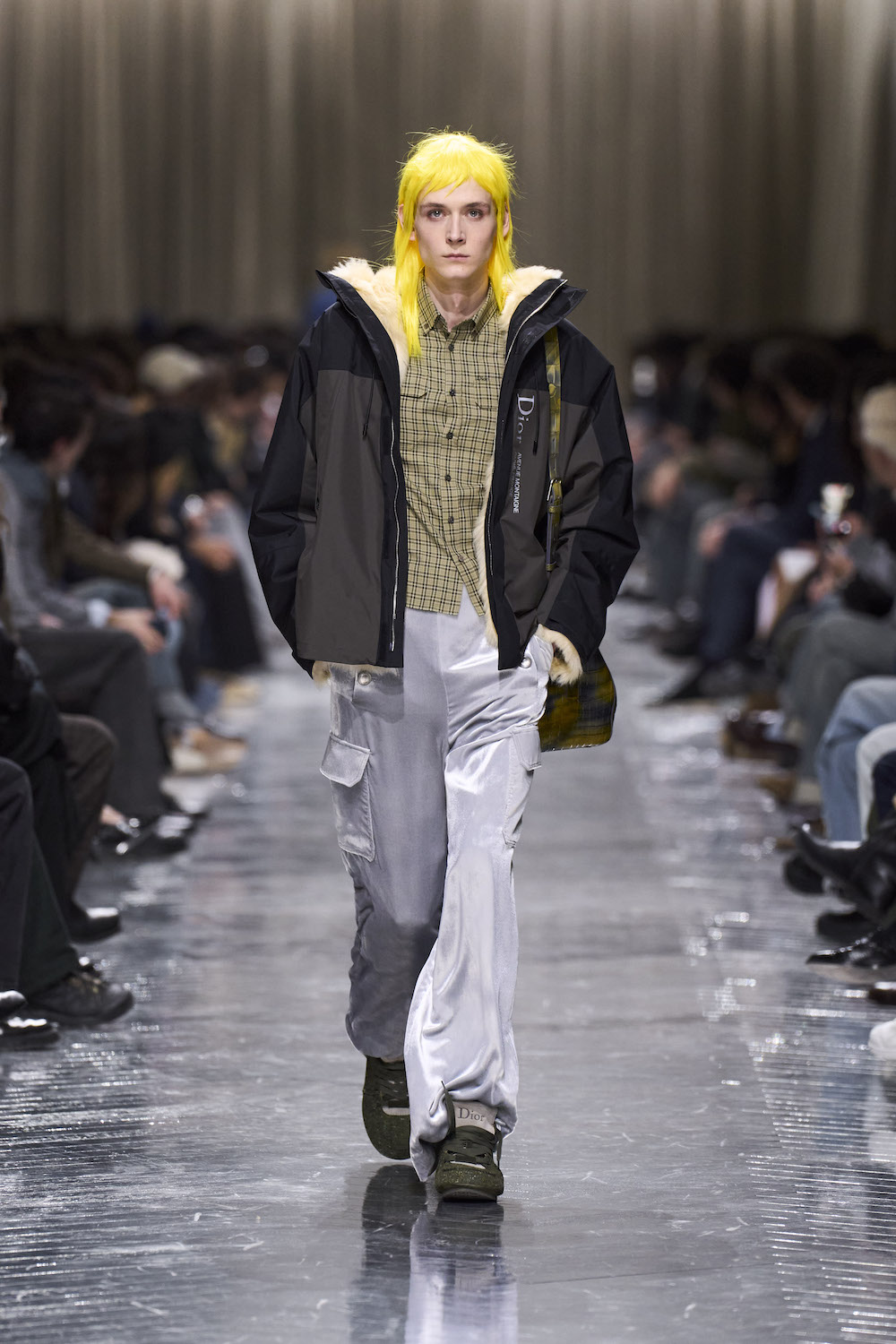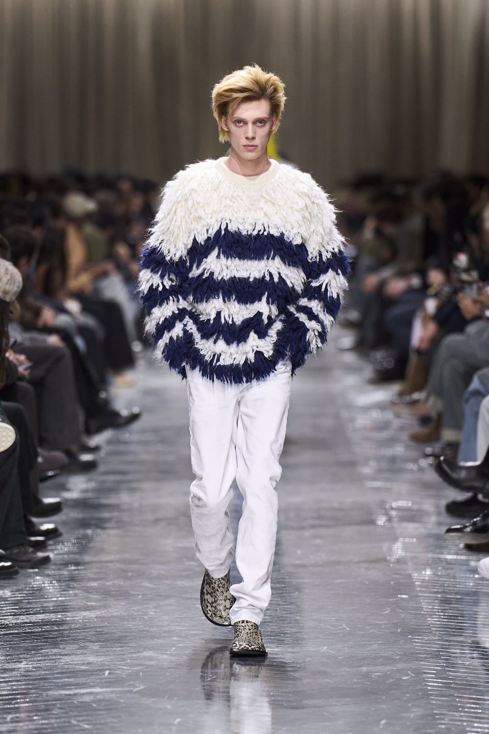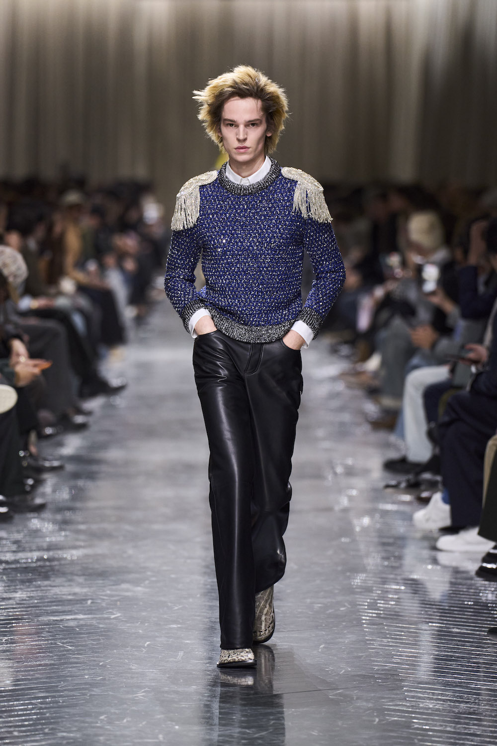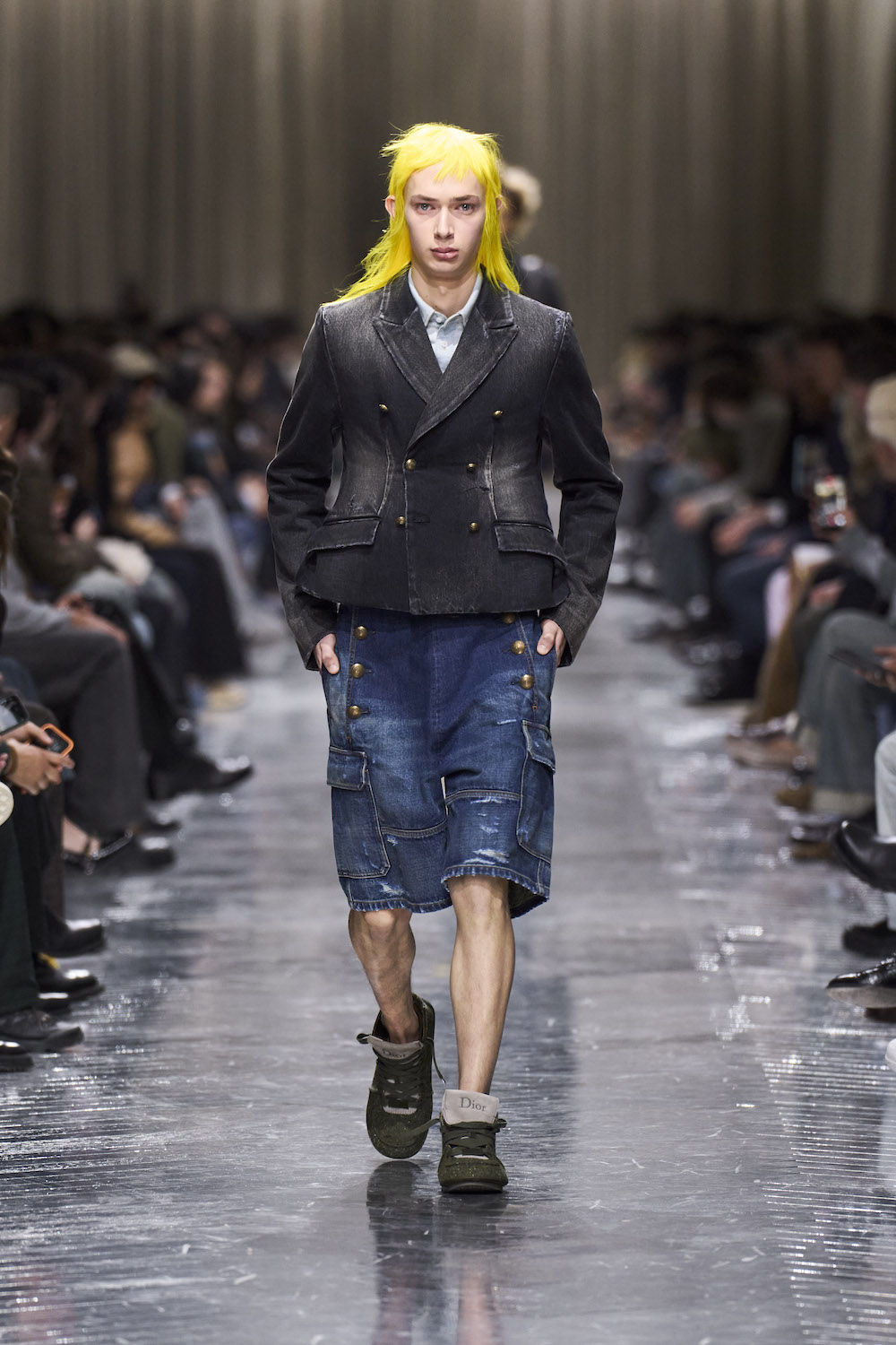 As the designer’s vision for the house begins to unfold, it’s evident Anderson is led by curiosity, to not only reimagine codes at the heart of Dior – here the Bar jacket appeared in battered denim and frayed tweed – but to challenge what makes menswear truly modern. The distinction between past and present is blurred. The result? Truly excellent.