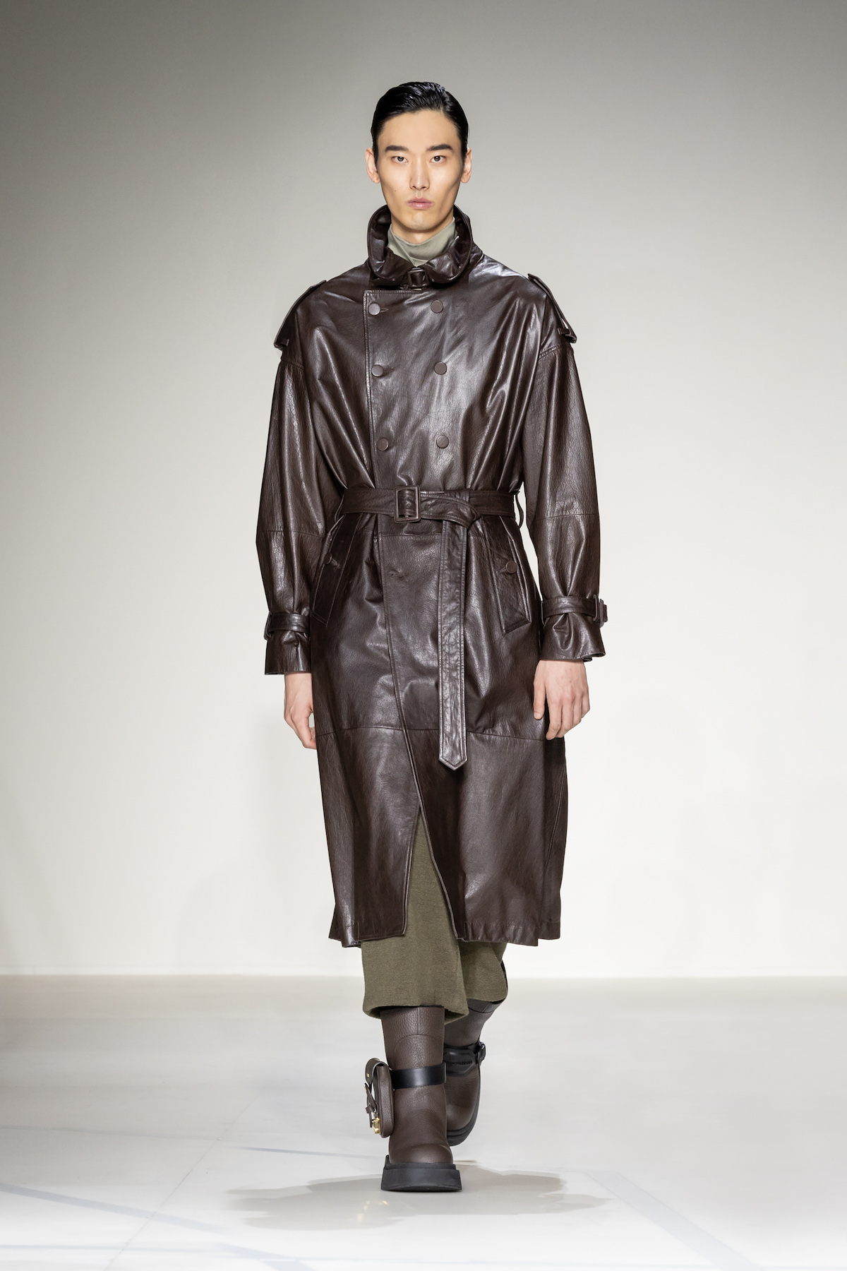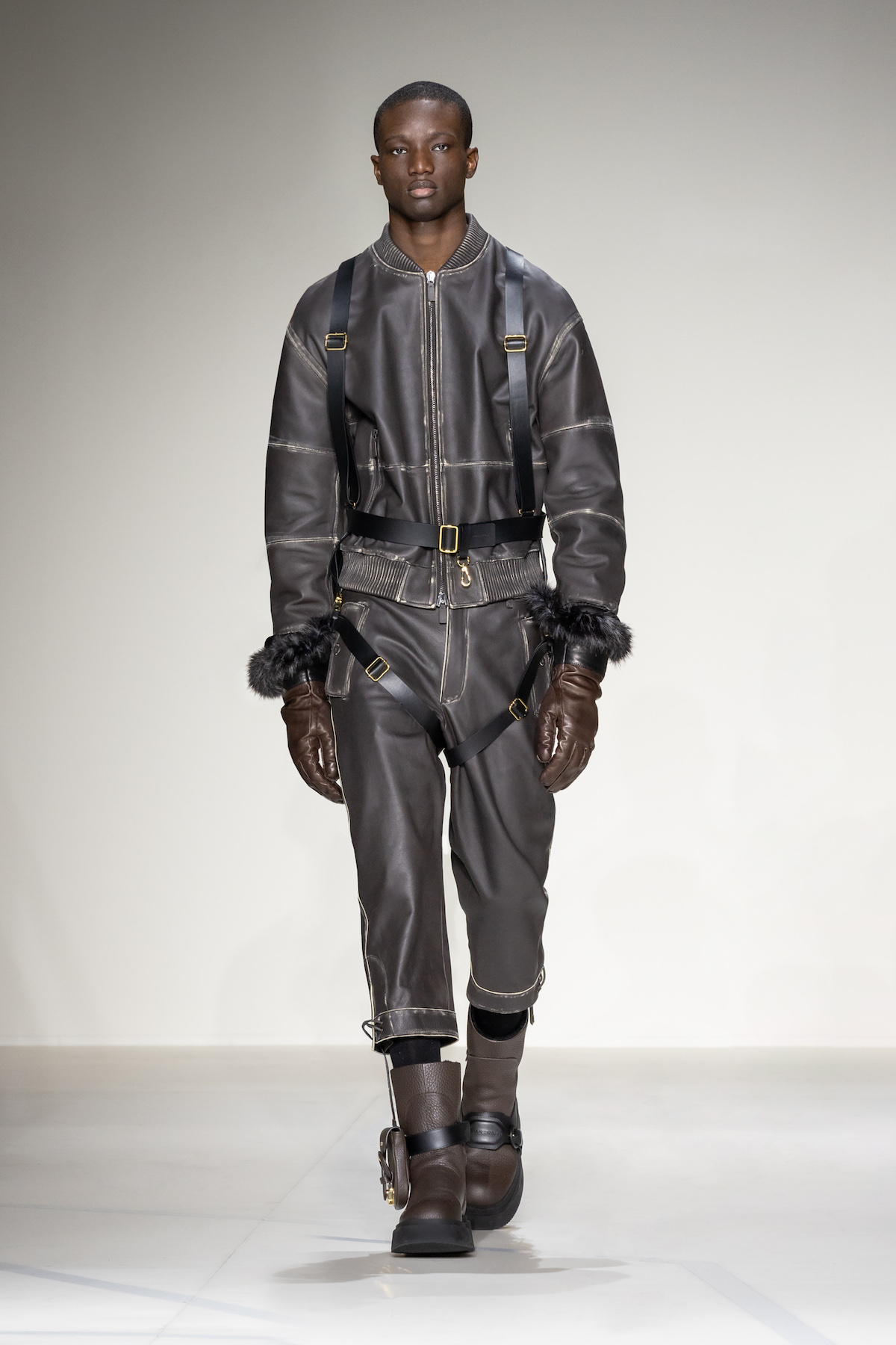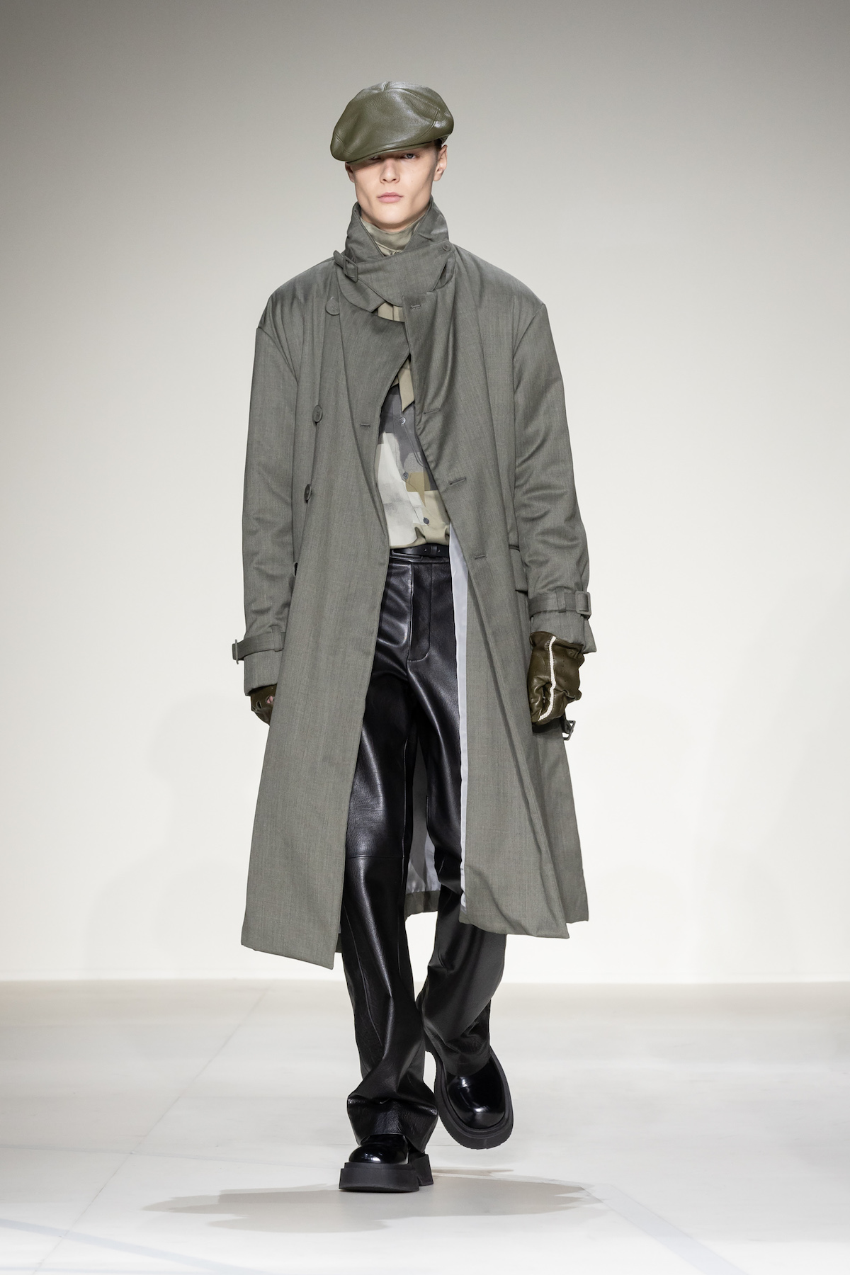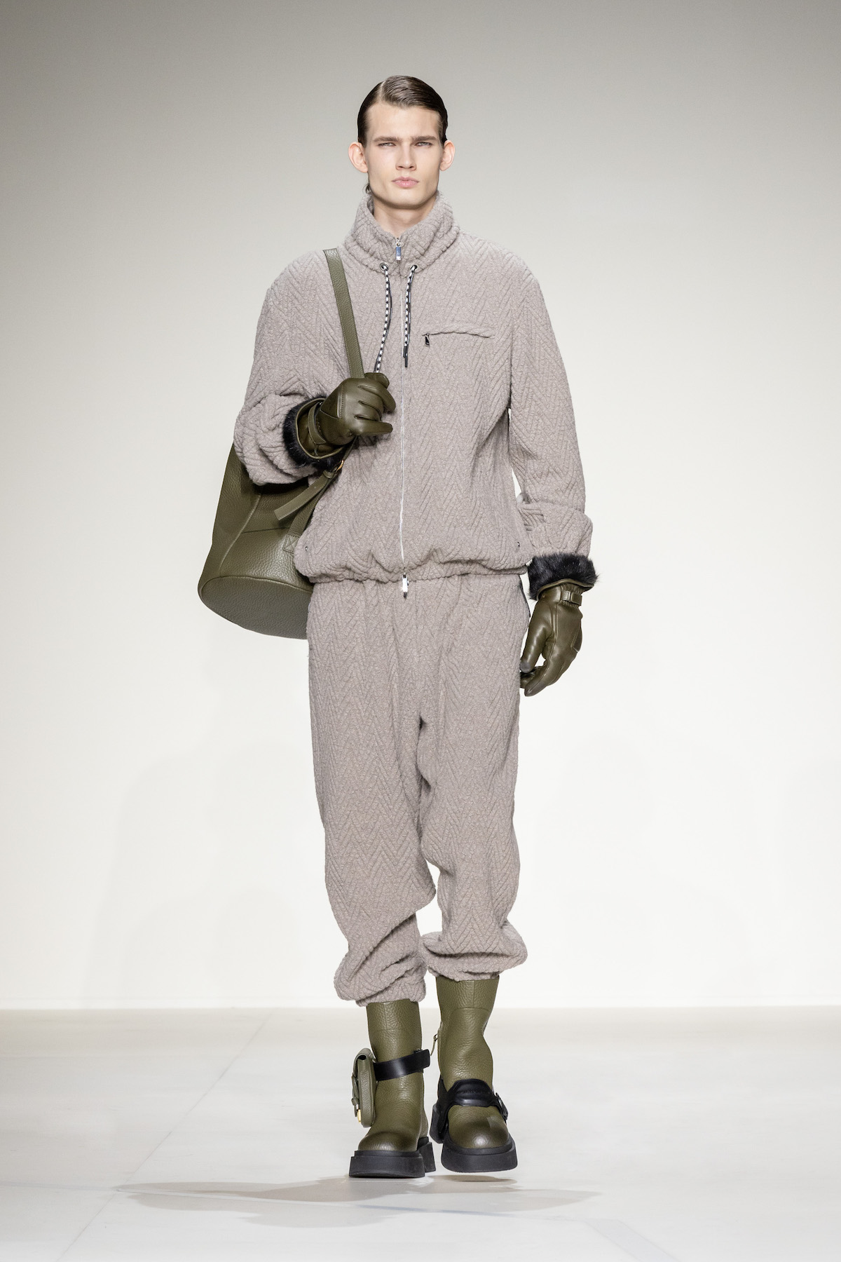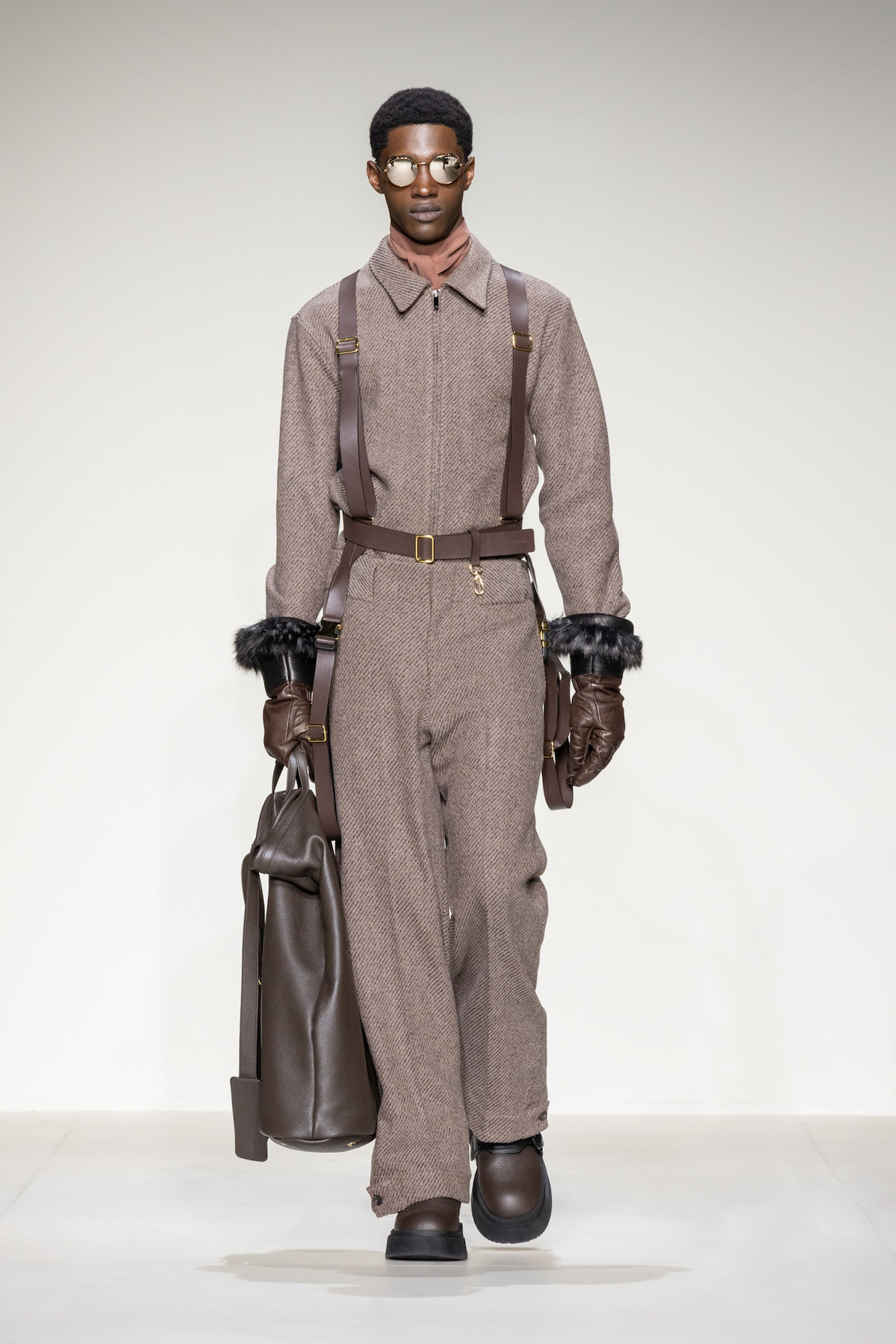 Emporio Armani’s AW23 menswear show was ready for take off. Packed with turbulent tailoring, comfortable cardigans with matching gilets, oversized T-shirts and sleek wool jumpsuits, an air of adventure and boundless elegance emerged as Armani’s men marched around its Via Bergognone rotunda show space. On the floor was a blown-up map of Milan, with the central points marked by a red dot, like an atlas observed from a bird’s eye view. The conceit was clear; aptly named, The View from Above, it was an edit that paid tribute to the 1930s era of aviation.