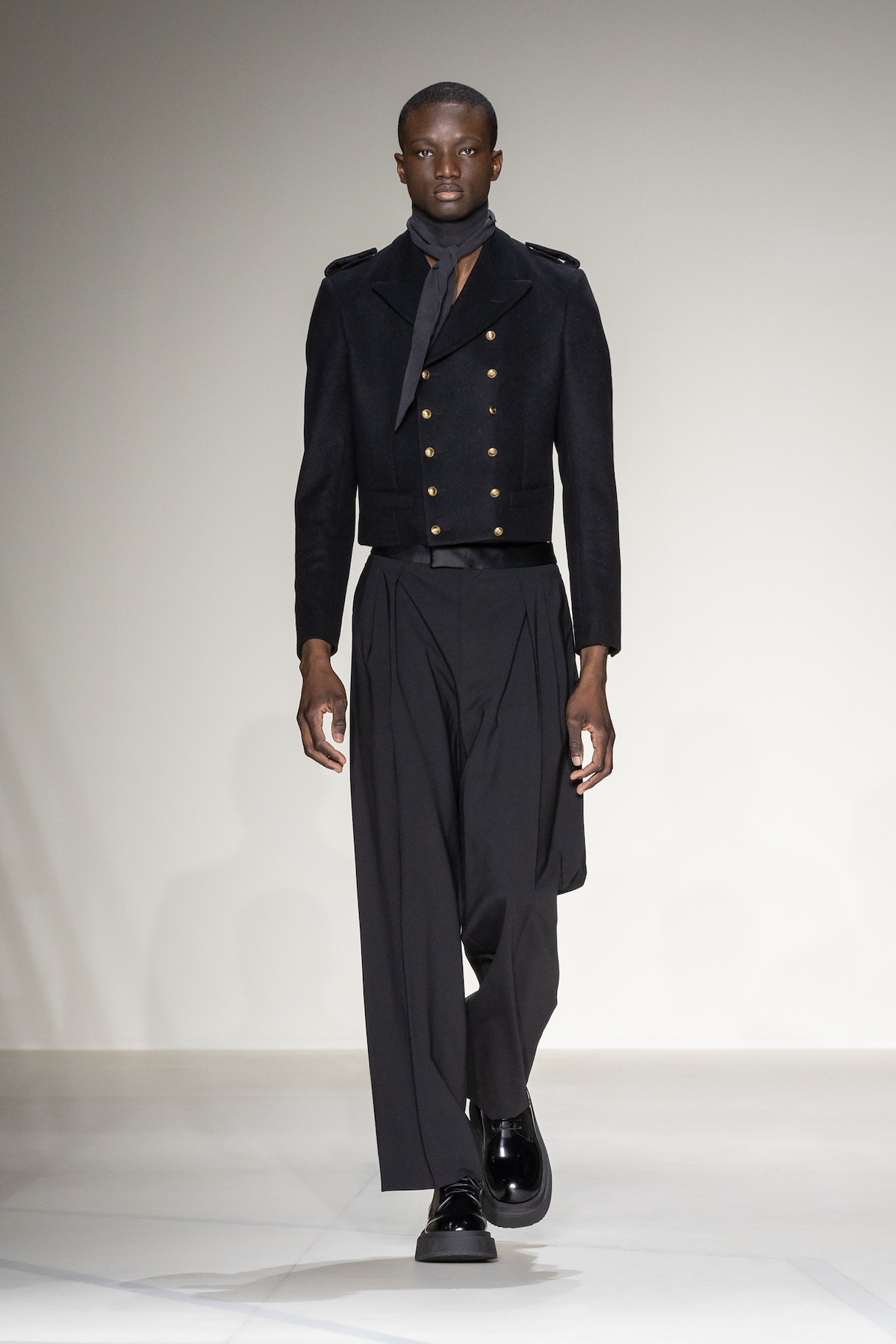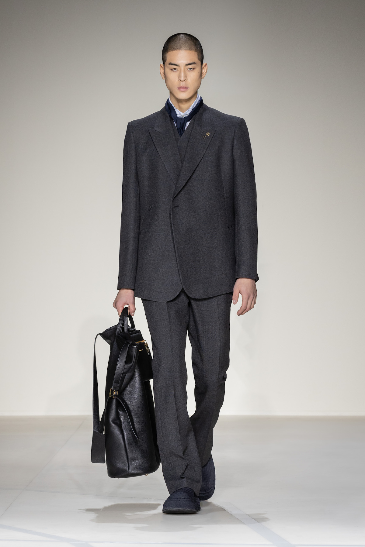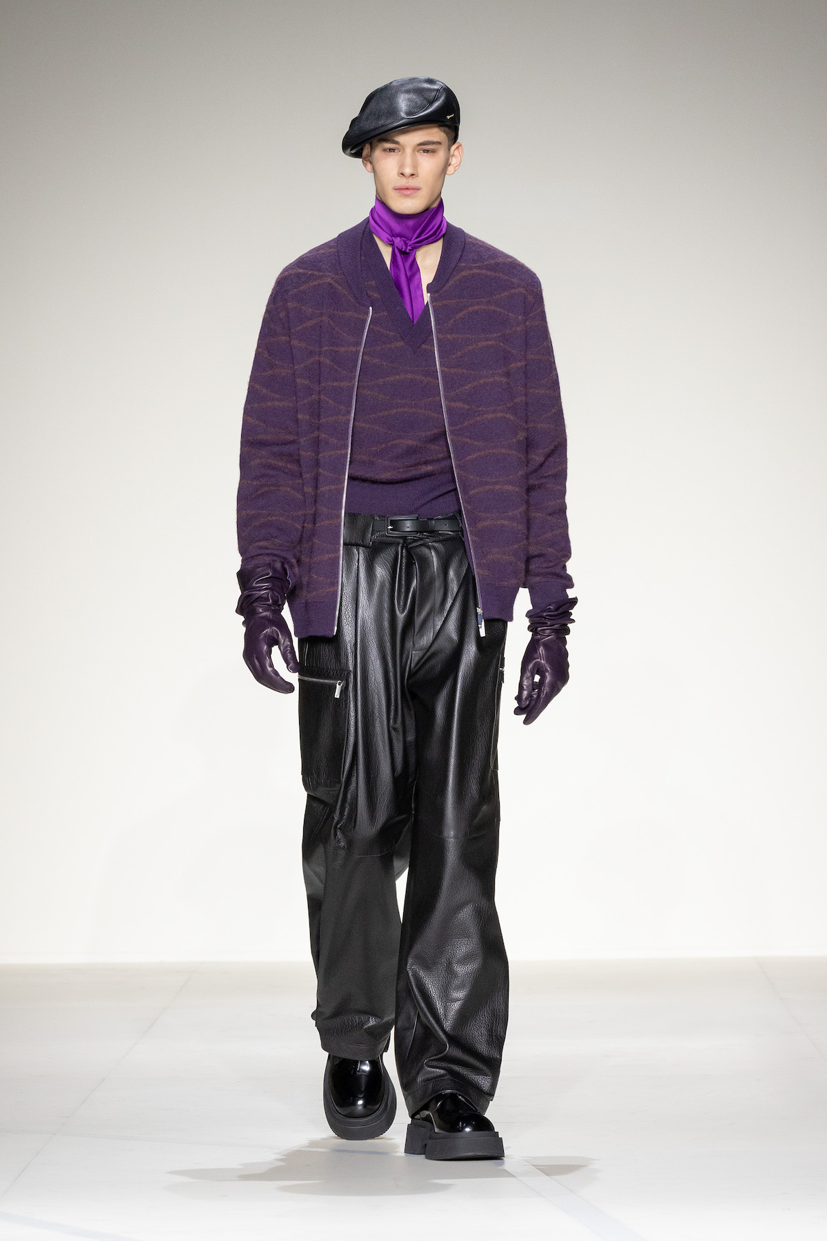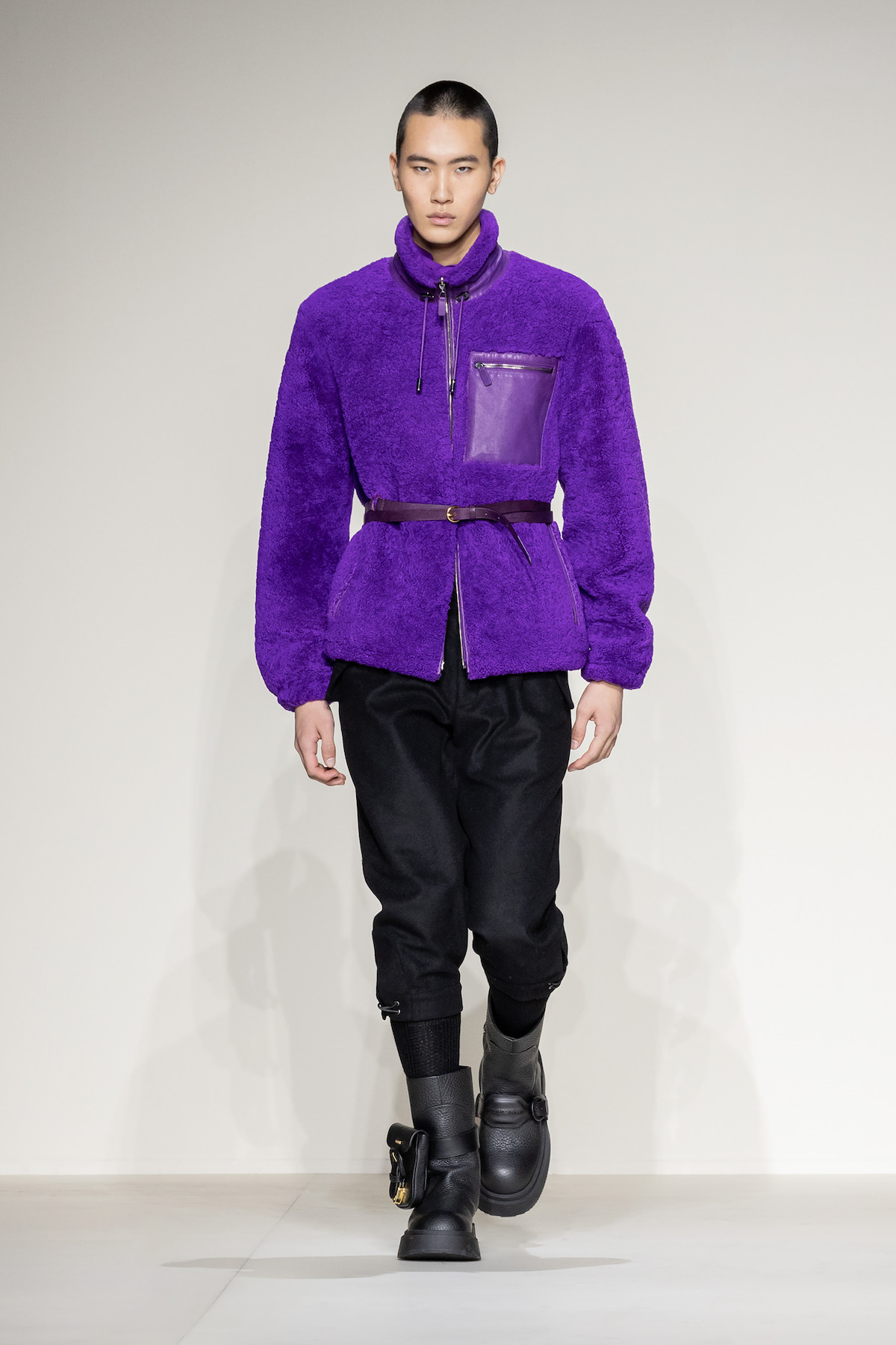 Fruity hues of purple, red and geranium pink were juxtaposed by inky blacks, moving the chromatic panorama from neutral ‘greiges’, beiges, caramel and rust to flamboyant flurries and back again. We hope you enjoyed your flight with Emporio Armani airlines, come again soon.