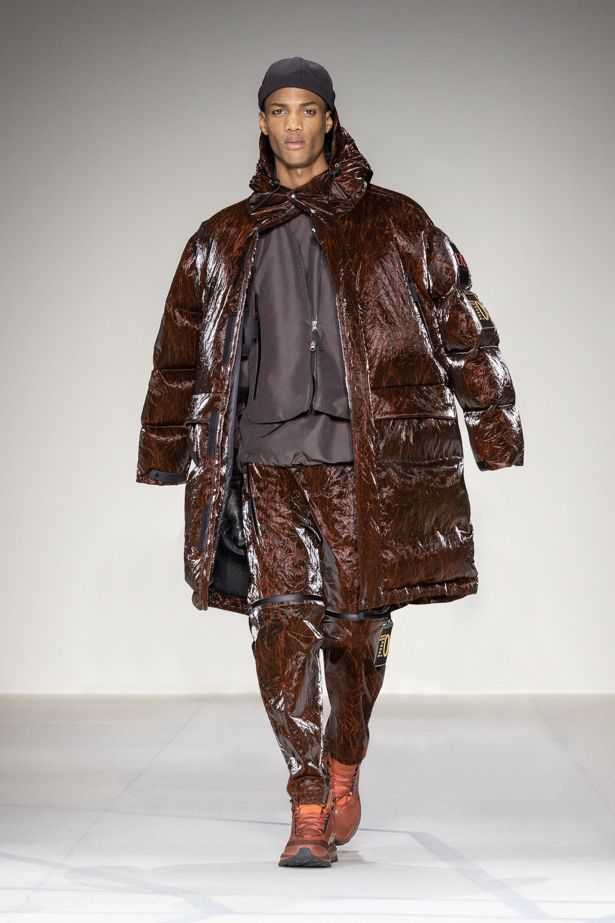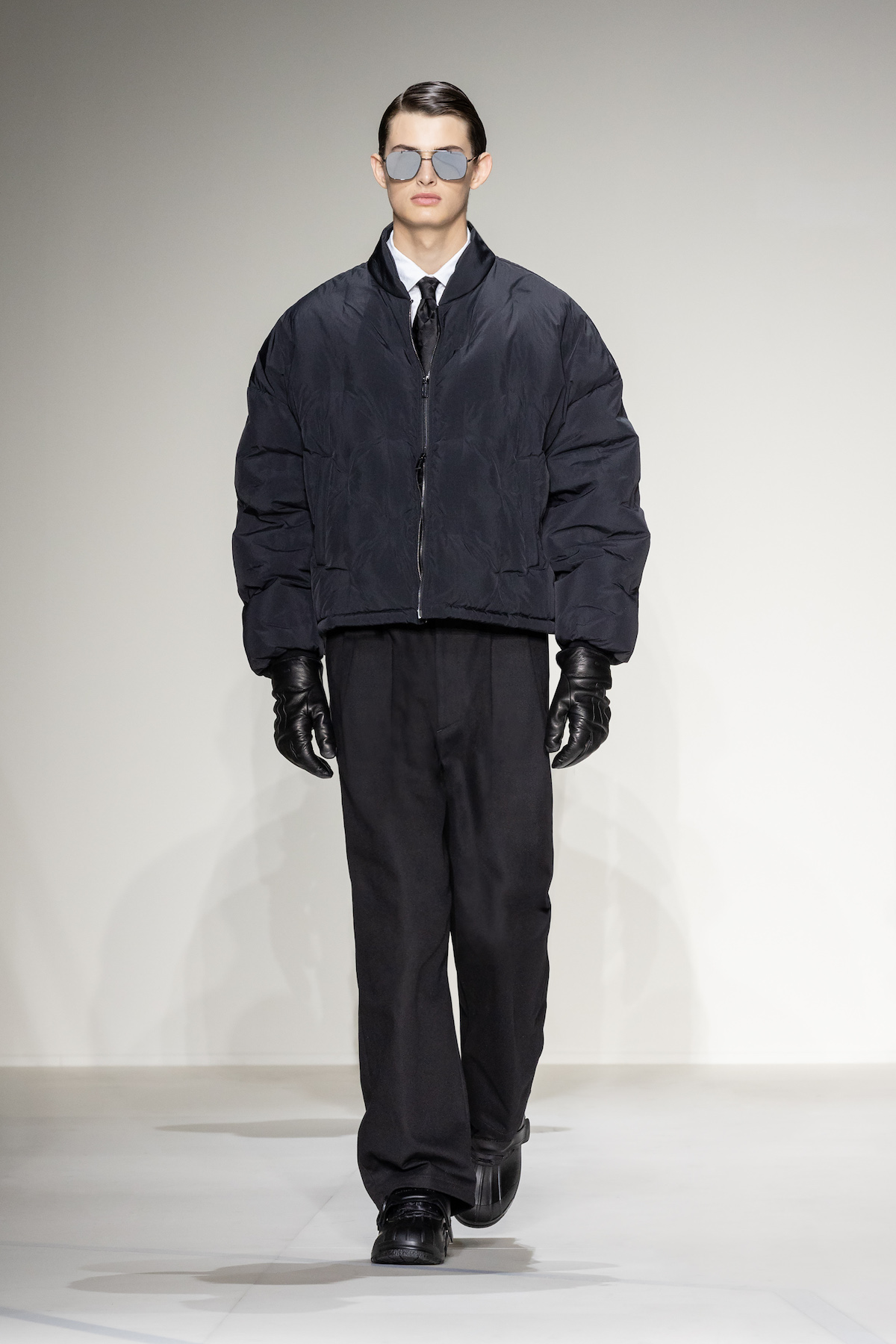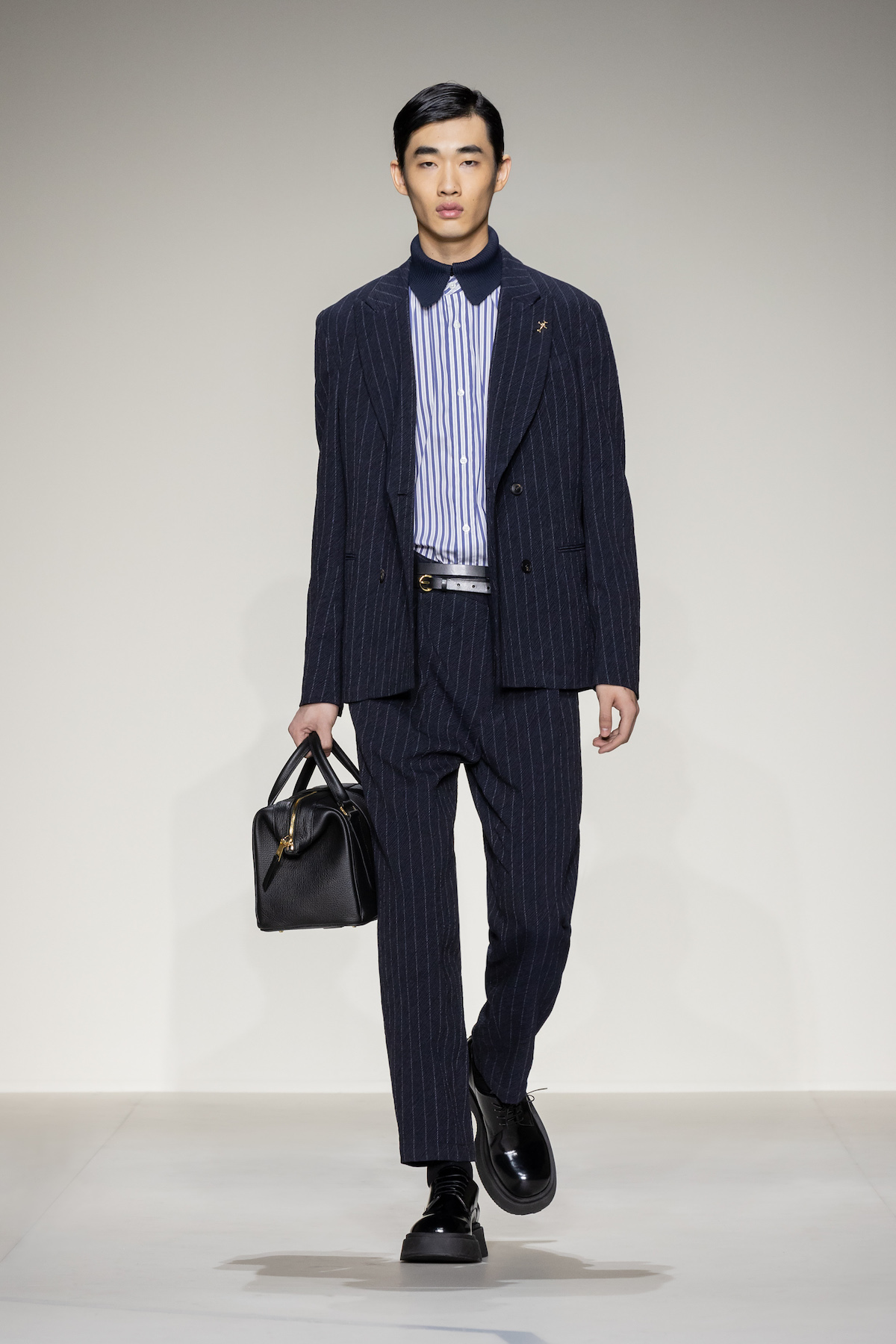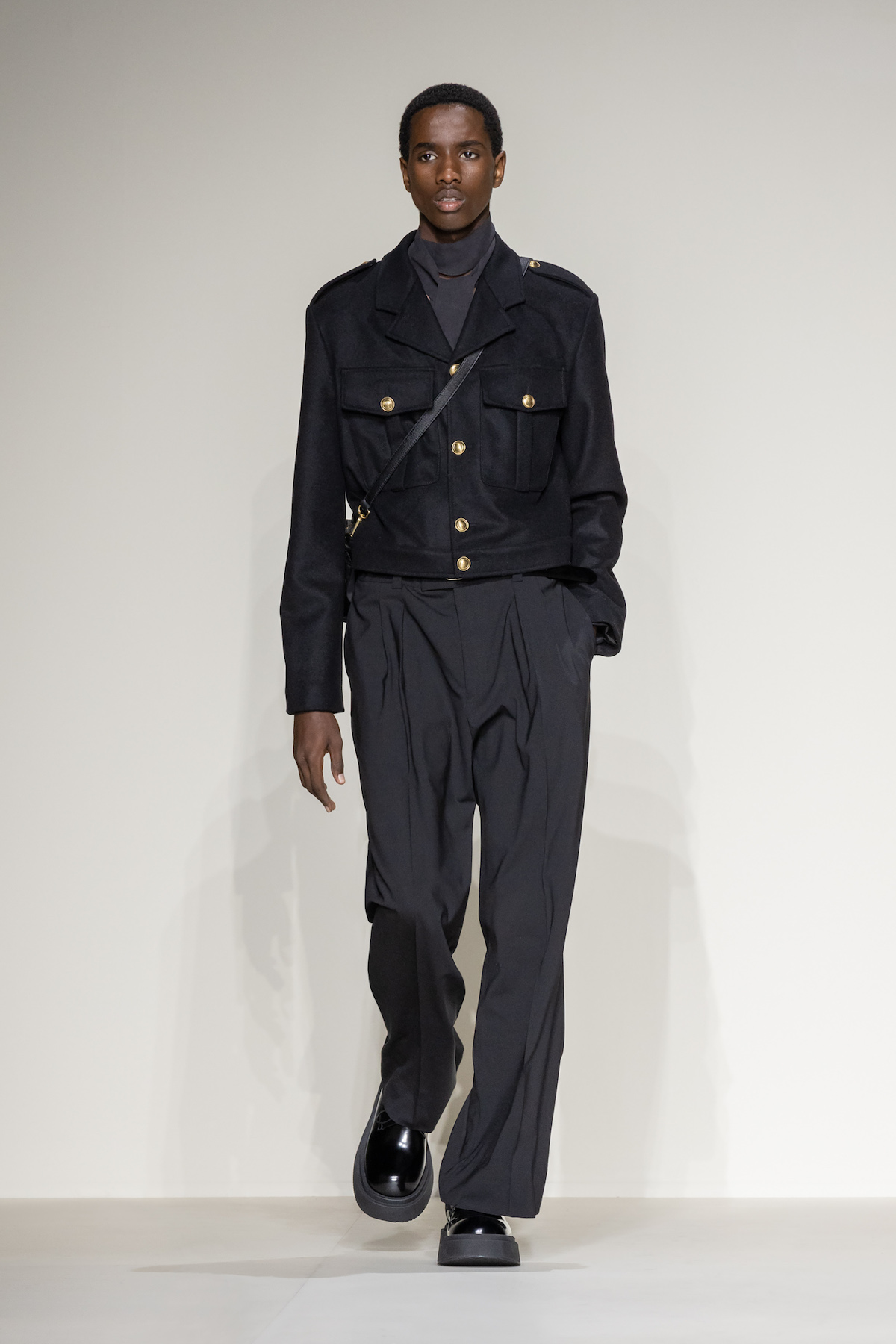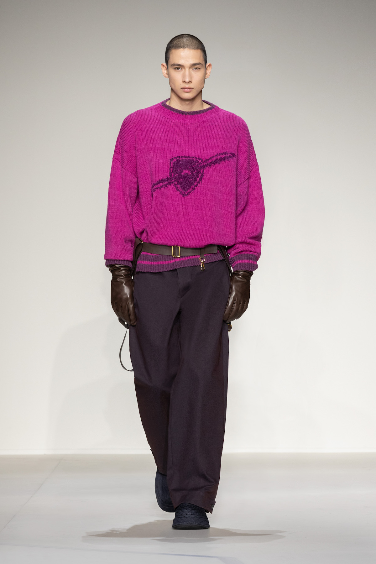 Fruity hues of purple, red and geranium pink were juxtaposed by inky blacks, moving the chromatic panorama from neutral ‘greiges’, beiges, caramel and rust to flamboyant flurries and back again. We hope you enjoyed your flight with Emporio Armani airlines, come again soon.