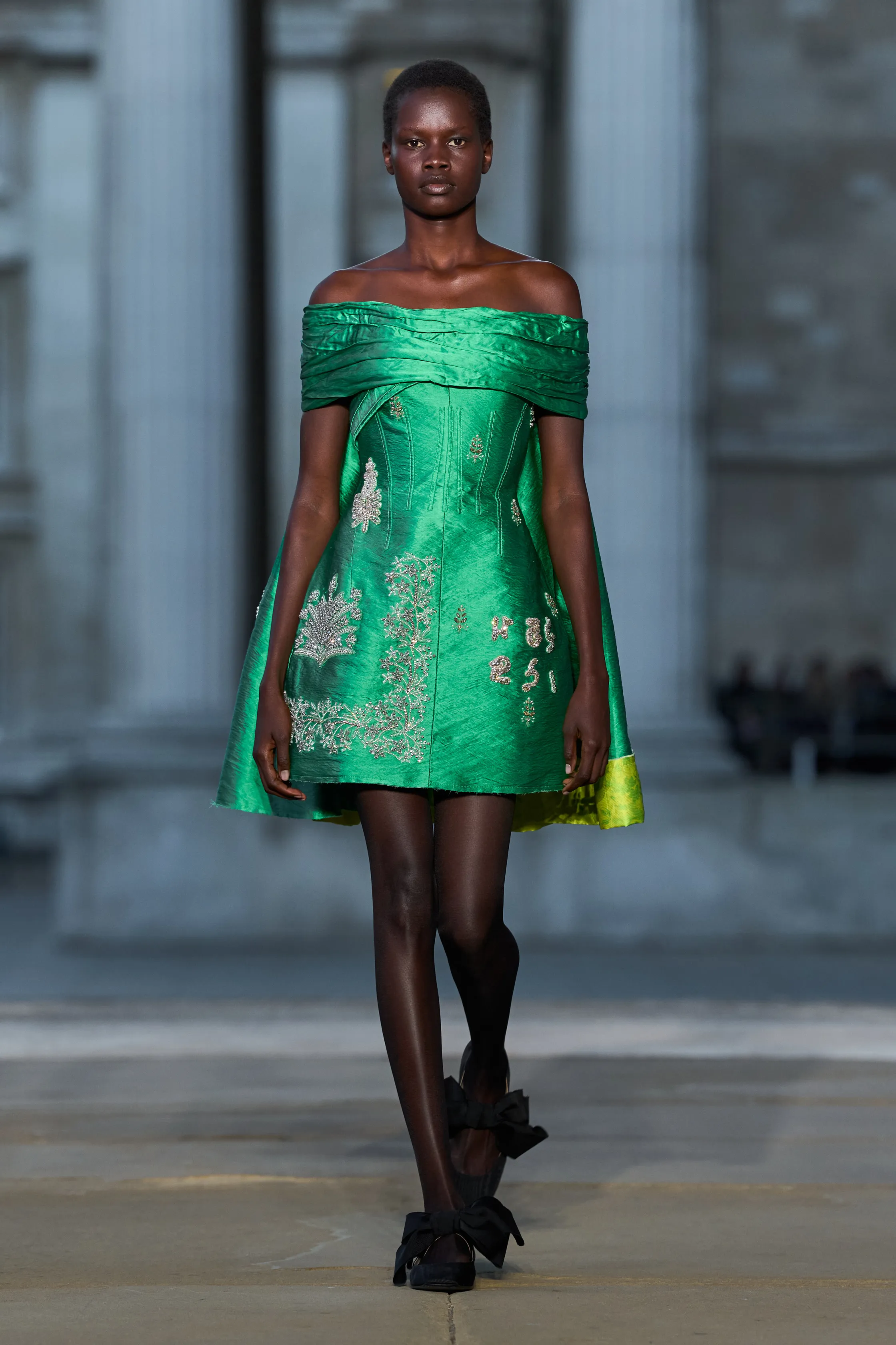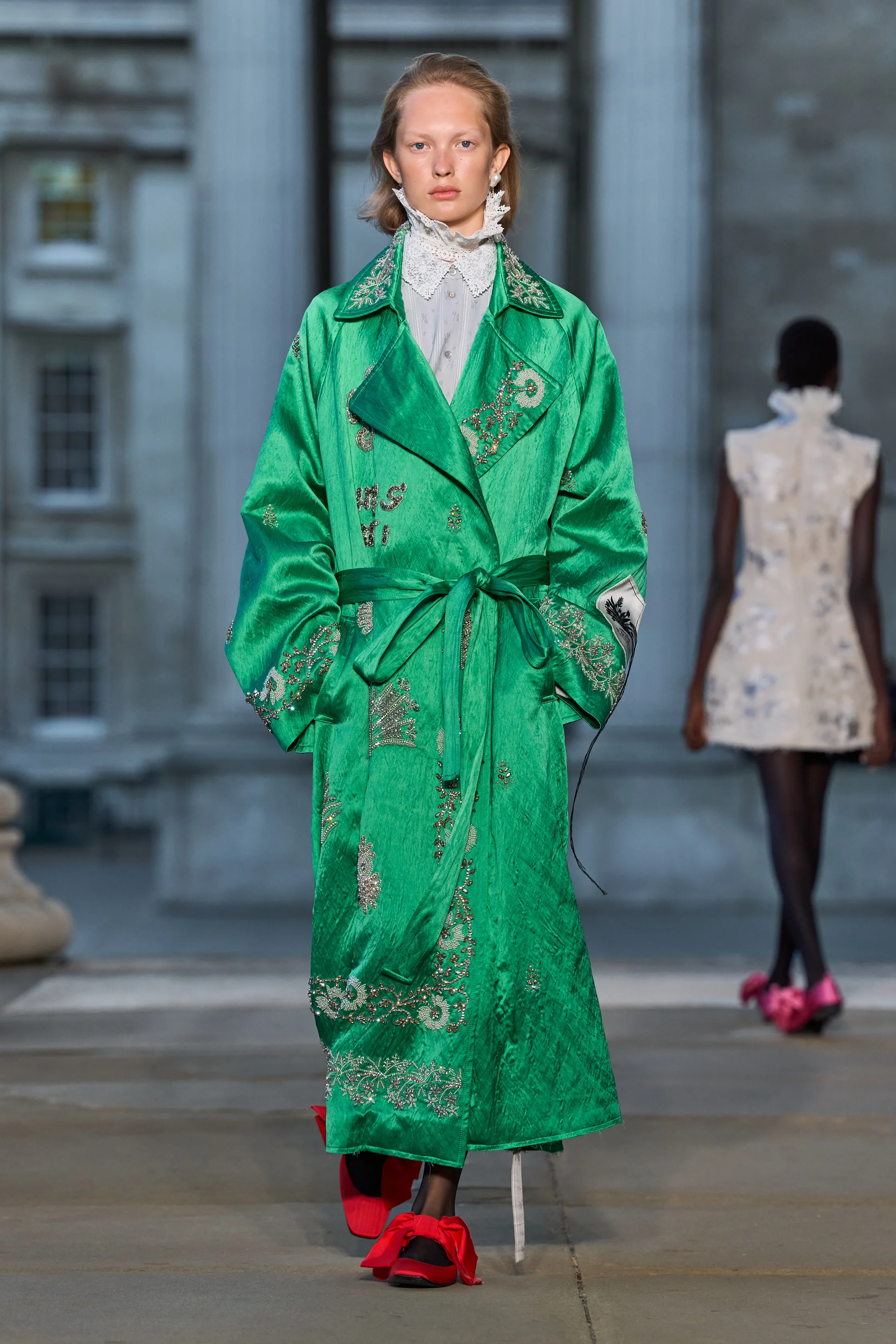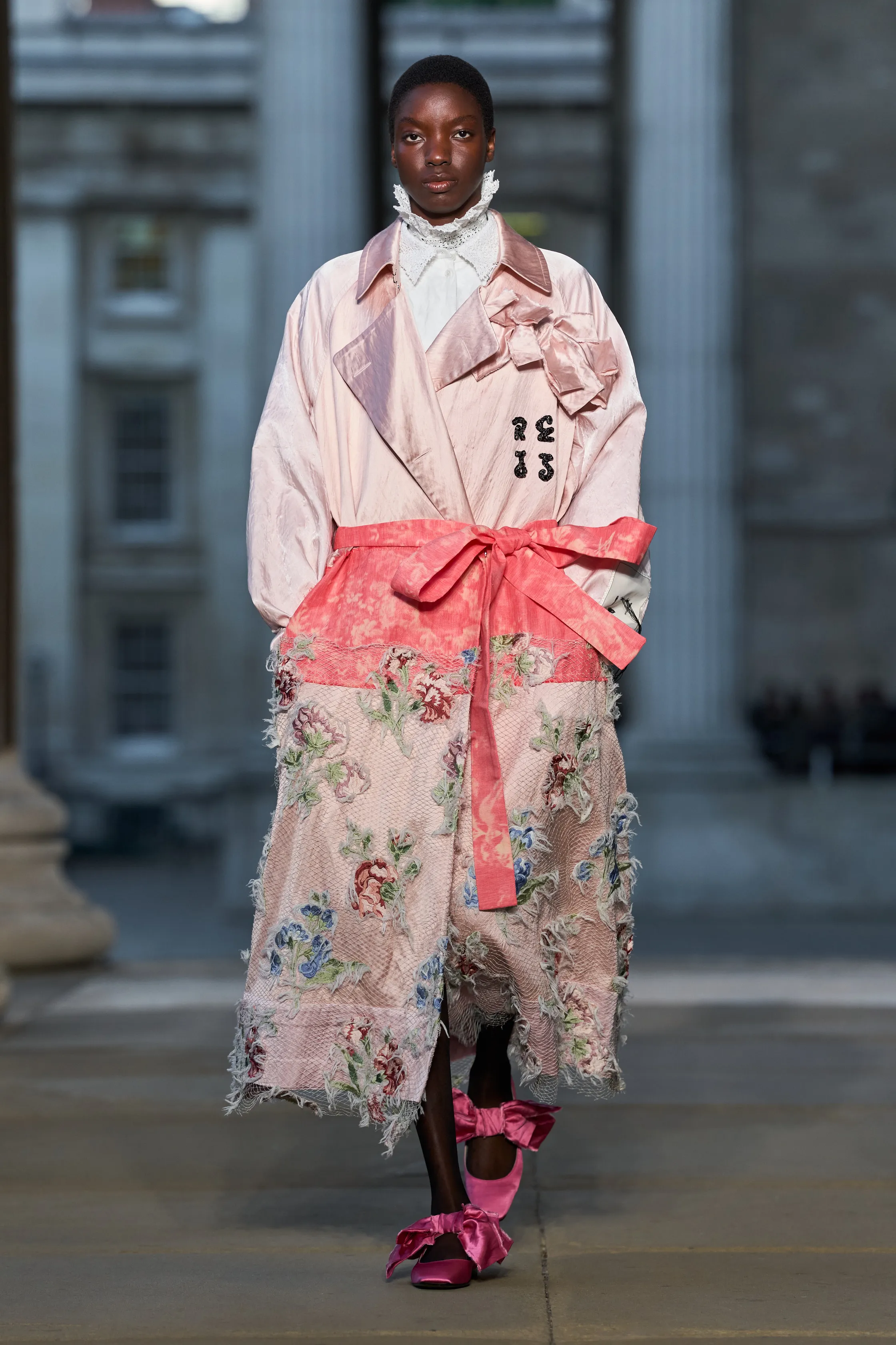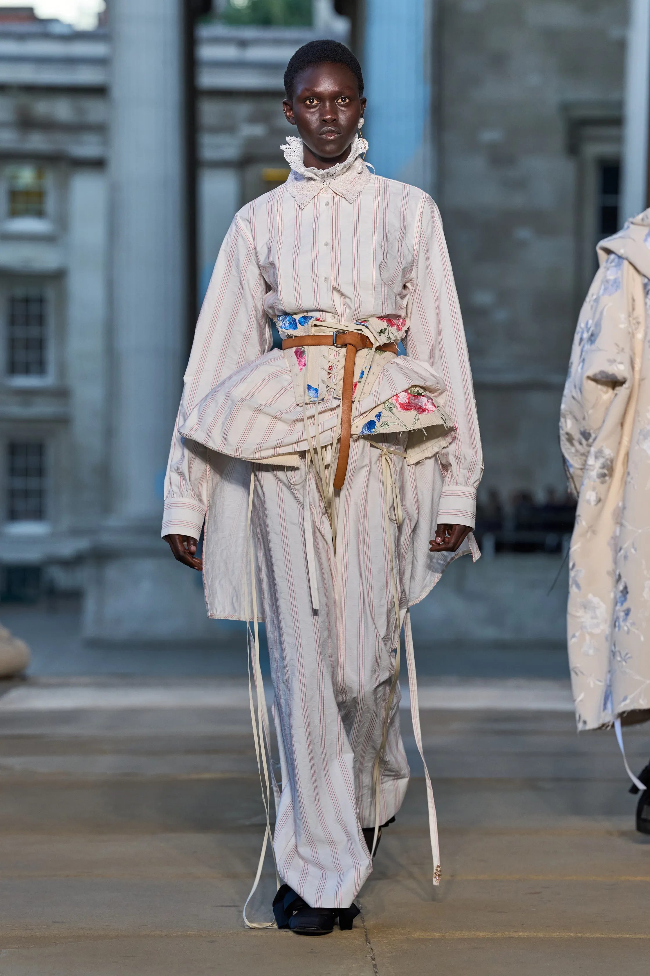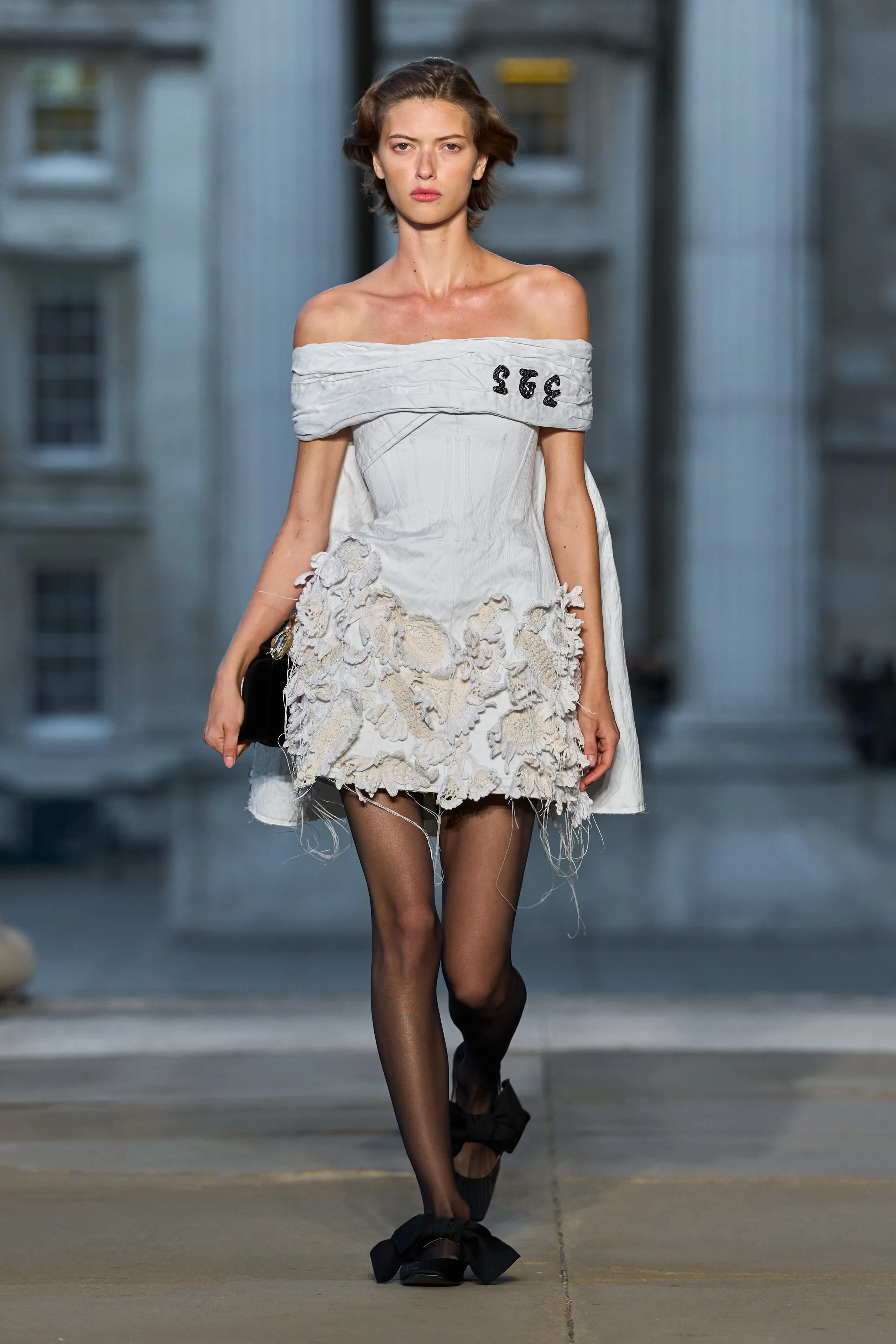 This designer’s research into every collection runs deep. For SS26, he sourced vintage fabrics and lace from the 1890s on several looks. But the storytelling never overshadows the clothes.