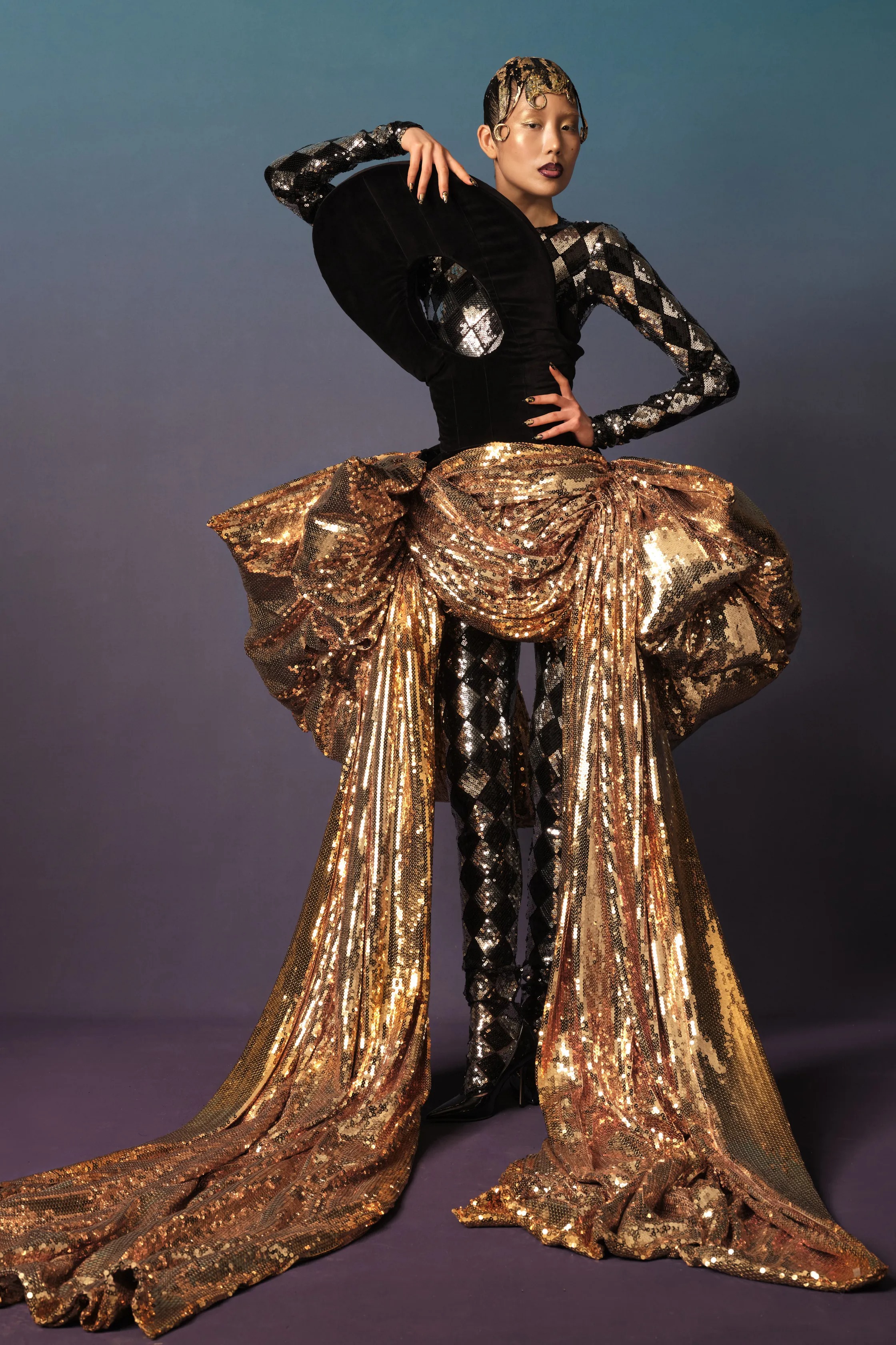 Reed followed that mantra with a show that majored on drama. Many of the pieces verged on wearable sculptures. Silhouettes were extreme with soaring, moulded picture and peephole necklines framing the face and exaggerated crinoline fishtails, creating a fantasy fishtail look. Tailoring was fluted and flaring and topped with towering toadstool hats. Reed channeled ideas of Eighties glamour into pumped up puff-ball party dresses and lavishly swagged gowns in gold and black. Add a golden cosmic halo hat and it all looked out of this world. Reed is a brand building savant with charm and chutzpah for days and serious celebrity pulling power. Now with a Paris house at his fingertips, his sights are clearly set on red carpet glory. The chic of it!