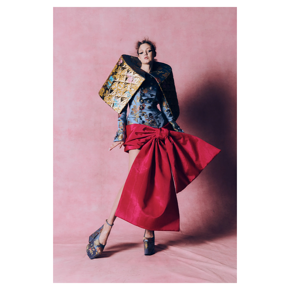 Stepping into London Fashion Week with the utmost panache, Harris Reed’s maximalist Multifarious AW26 collection marked the merging of old and new. Re-imagined iterations of his signature statuesque gowns floated through Claridge’s dimly-lit ballroom, offering a considered extension of the label’s distinctive identity, whilst the collection treaded new territory with the unveiling of the British-American designer’s gender-fluid bridal line.