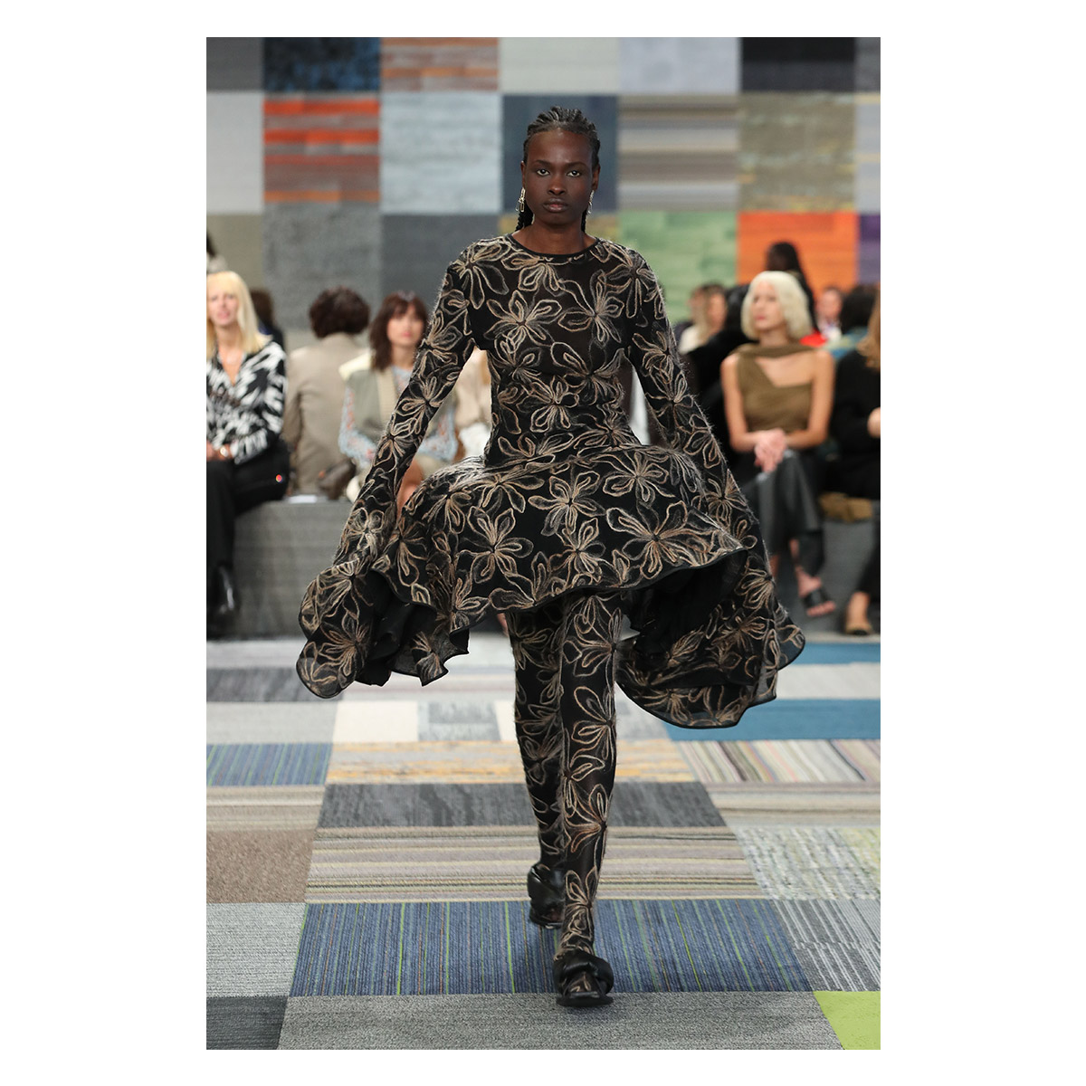 In what was the most eagerly anticipated show of the week, Jordan Dalah delivered. An alumni of Central Saint Martin’s he has already been setting the pace here for bold, beautiful, softly sculptural clothes and today he created all this and some. “I’m inspired by theatre and I look at a lot of costume and pull it back to the ready-to-wear space to make it clear that ready-to-wear is where I belong,” Jordan told us after the show. “I look at big volumes, I want to take things too far, I don’t like safe silhouettes.” His suspended cloud-like dresses “under bustles” draped with fine stretch elastic were divine and a much needed lift to a world where we have all worshipped wearable this past year. These are dresses to stand in and sway gently and just be smashing. “There’s no rhyme or reason to the veiling, it’s simply a powerful silhouette I love,” he says. “Renaissance was a big point in which I started a lot of my work. I paint in that style, that was what got me into art and fashion. My initial collection is very much inspired by the Tudor period, big billowing shapes. I still feed that into everything I do but I also leave it where it needs to be left. It was in this collection but it wasn’t everything in this collection. I think once I find a reference I love to leave it and then pick it up again. There is no real theme to what I do. I start with 3D, the volume. I need to see what shapes look like. For me, it’s all about the silhouette on the body and pushing that silhouette.” And push it he did. There was an epic energy that ran through the collection, with his “pool toy” dresses and shocks of redhot big bows and brilliant larger-than-life sleeves. “I feel very lucky to be opening fashion week here. I’m really grateful - I’ve never been to a fashion week in Australia before but I hope there is space for people doing something a little bit different, and allowing me to have my vision.” Oh yes, we like his vision.