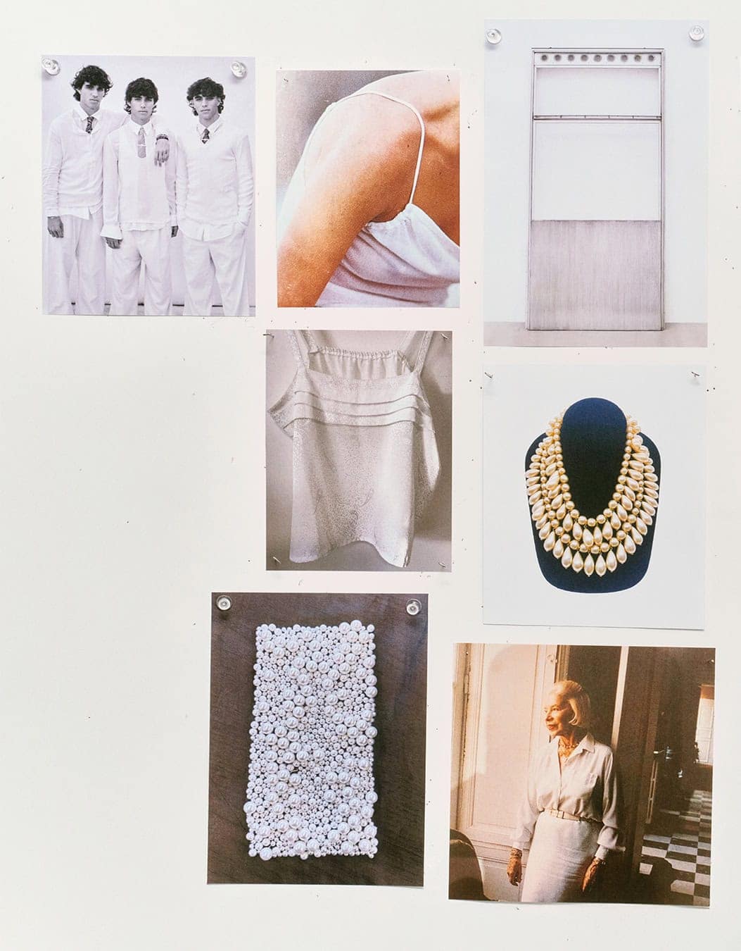 I love a little bit of a masculine reference in there, like the layered cotton shirts and the image of the three guys all in white from an old L’Uomo Vogue. It gives you that crisp, summer feeling. There’s definitely a masculine-feminine play that’s happening in contrast.