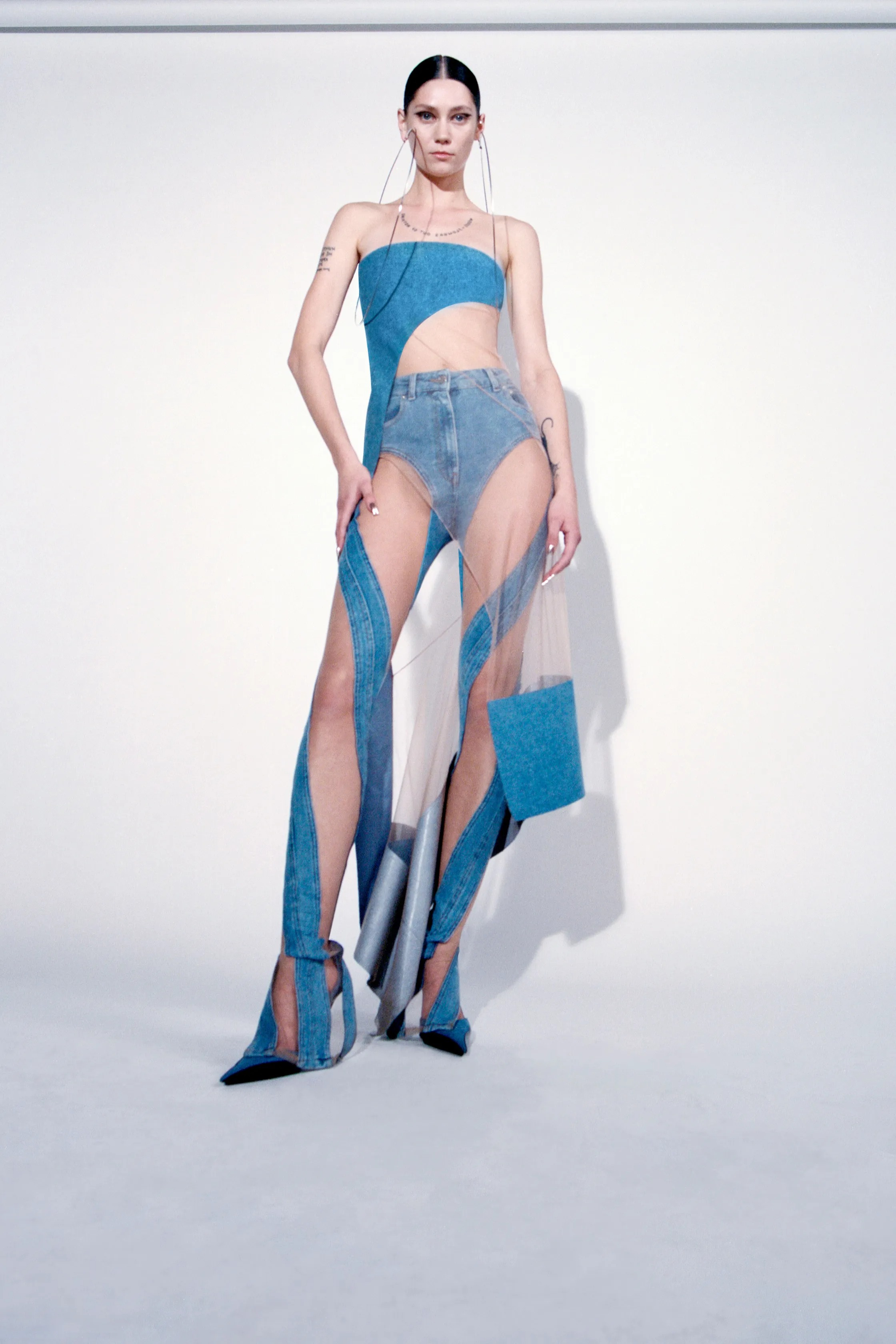 Casey Cadwallader strikes again. The Mugler designer has skipped the catwalk once more in favour of his newest, mini blockbuster. Through the pandemic, such films have propelled Cadwallader’s vision for the storied house to the heights of Hollywood, with the biggest names in showbiz flocking to the designer to feel their own superhero fantasies; armoured in skin-tight, nude illusion Mugler bodysuits which are inclusive of all body types.