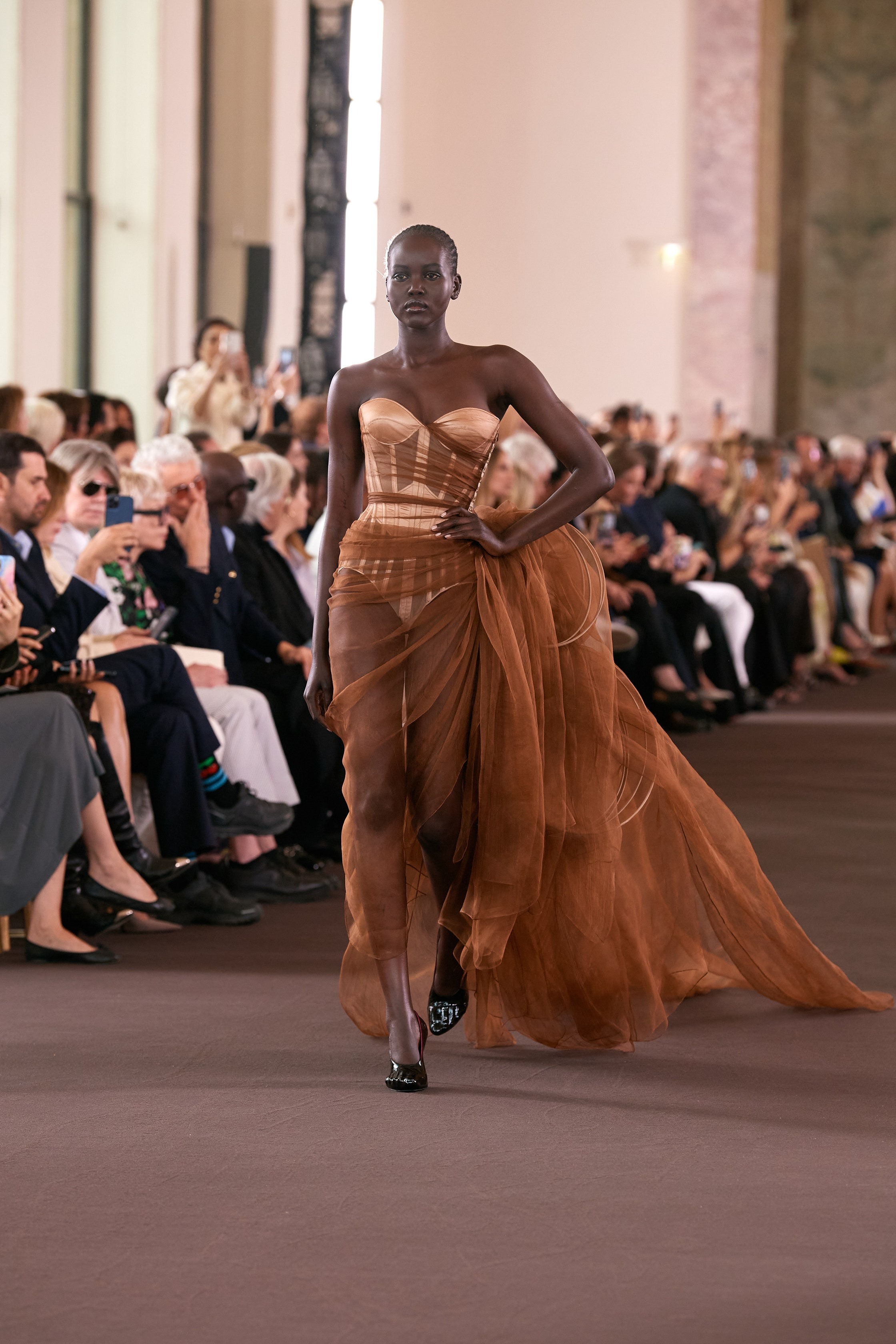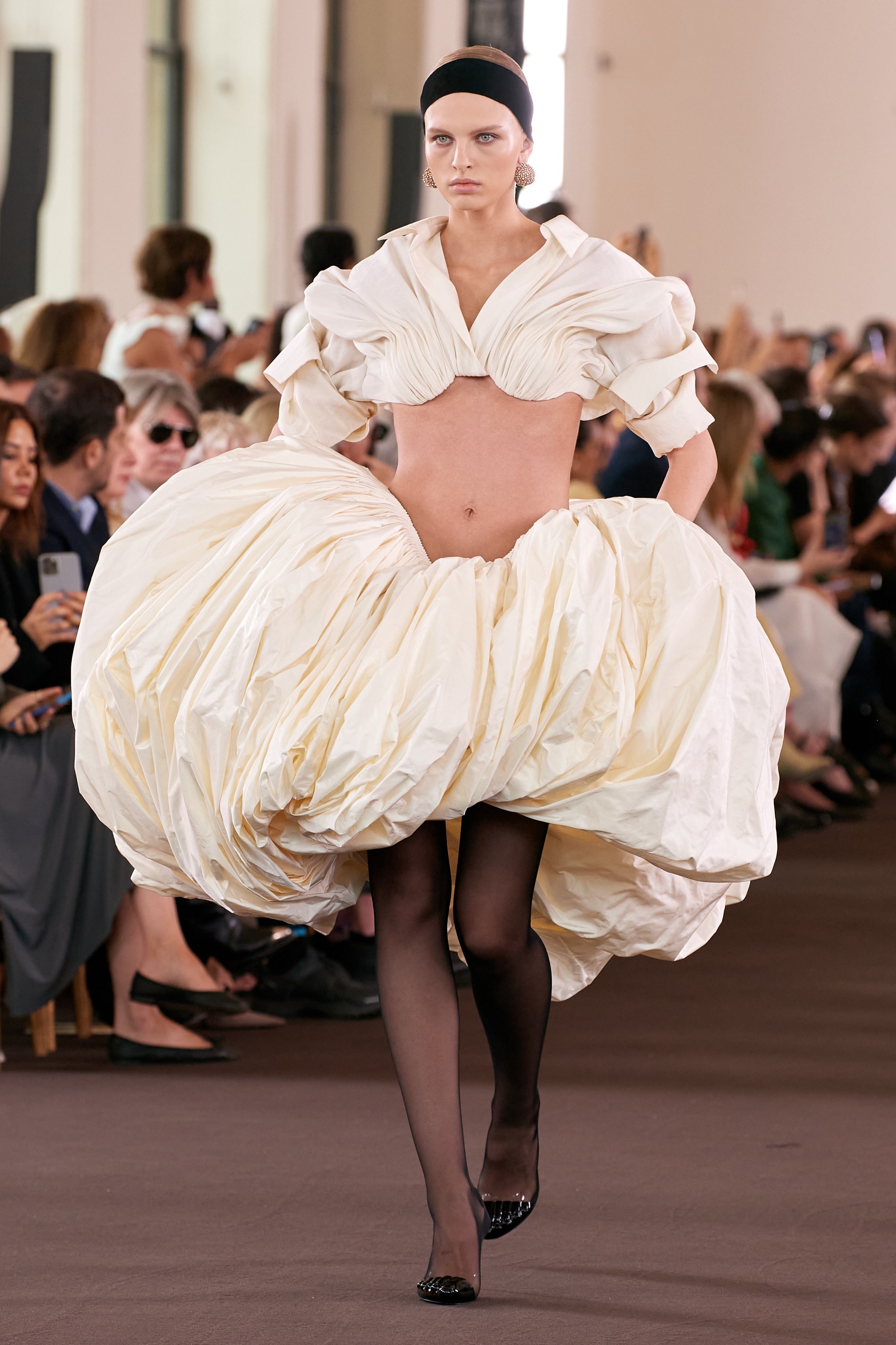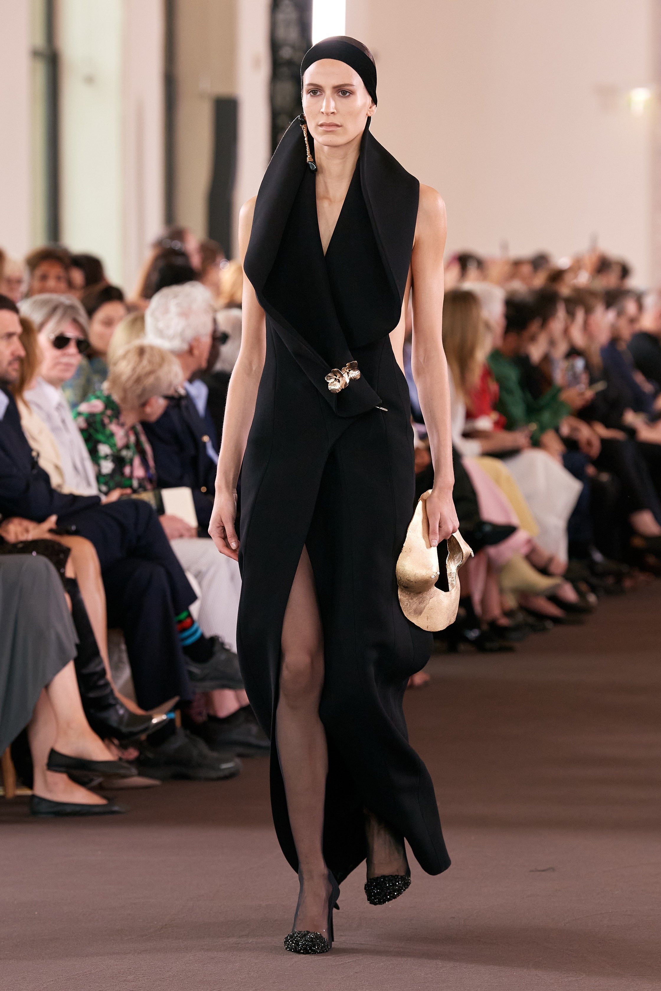Whilst his previous outings have leant heavily into the surrealist foundations of the house, this couture collection saw a more spontaneous side to Roseberry. Dresses came fashioned from painterly swirls, whilst Yves Klein blue migrated from skater skirts to the necks and torsos of models. Elegant duvet coats proved a highlight, as did a parade of sensually draped corseted frocks with goddess-like qualities. “I wanted this collection to be aggressively, unmistakably human – and to be rooted in artistic references that feel timeless. To dress, decorate, but most importantly, to create, is as primitive as any instinct we have.”