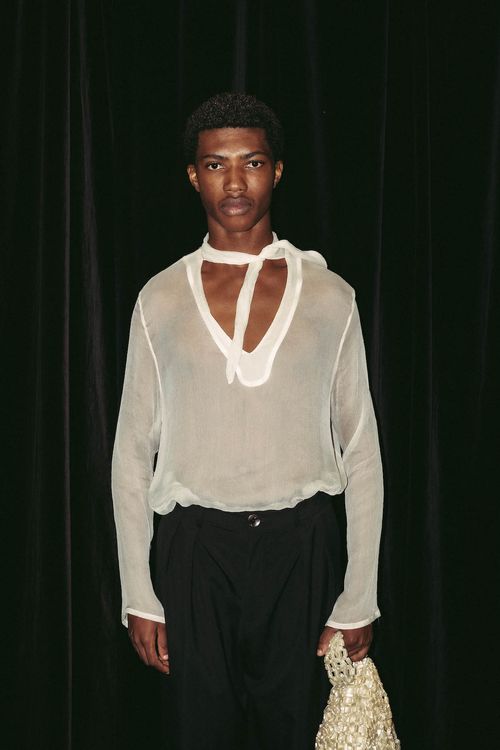 It's a new dawn, a new day, a new phase for Albus Lumen. Nostalgia, faith and future were the words on Marina Afonina's mind for the Resort 2024 collection. This is Phase II, a rebirth of the elements of Albus Lumen's past, bringing them into the now. Grounded in knitwear, made in collaboration with the Woolmark Company, the collection takes inspiration from the ocean and nature with its tonal palette. Pearly silk dresses, quilted mini dresses and tailored menswear make up Albus Lumen's second unisex collection. We spoke to Marina about the evolution of the brand before the show: