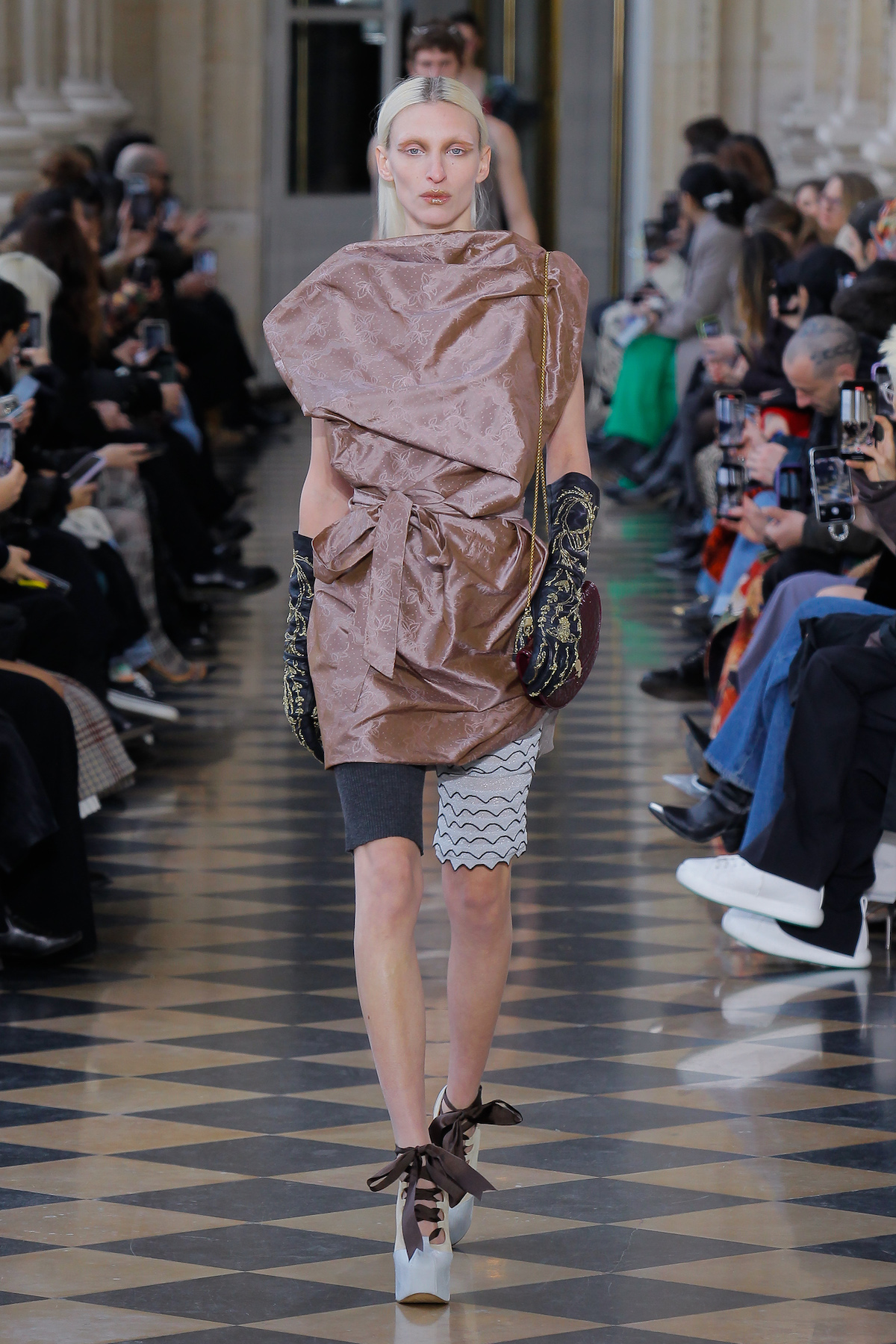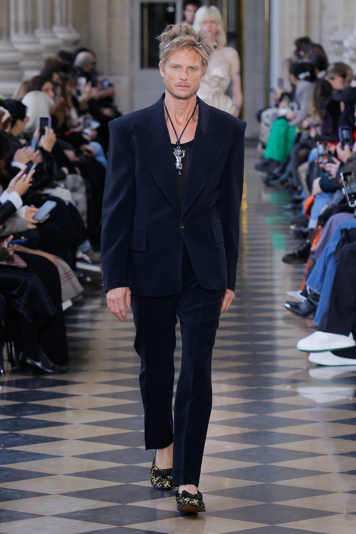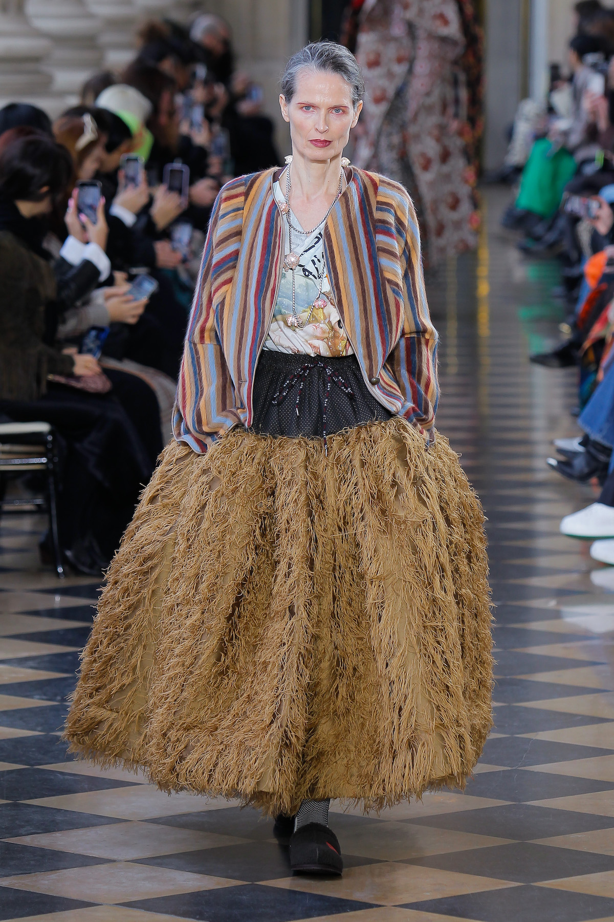 The first Vivienne Westwood show after Dame Vivienne’s death was always going to be emotional. Andreas Kronthaler, her partner in life and design, who carries her flame so passionately, paid a beautiful tribute to the incomparable designer. It was a family affair, with friends and old Westwood favourites amongst the models. They paraded in looks that celebrated the essence of Westwood. The clothes were sexy, voluptuous and life-affirming. The first look was a T-shirt featuring her image, worn with a collage of Westwood-isms – a mini kilt over a baroque-print dress and platforms. There followed punk-inflected looks, wild tartans, blanket coats and towering platforms. Boys and girls both wore corset dresses and tweed suits (with knickers replacing trousers). There were slouchy Westwood track pants and billowing ballgowns – there’s a Westwood way to do every moment in life.